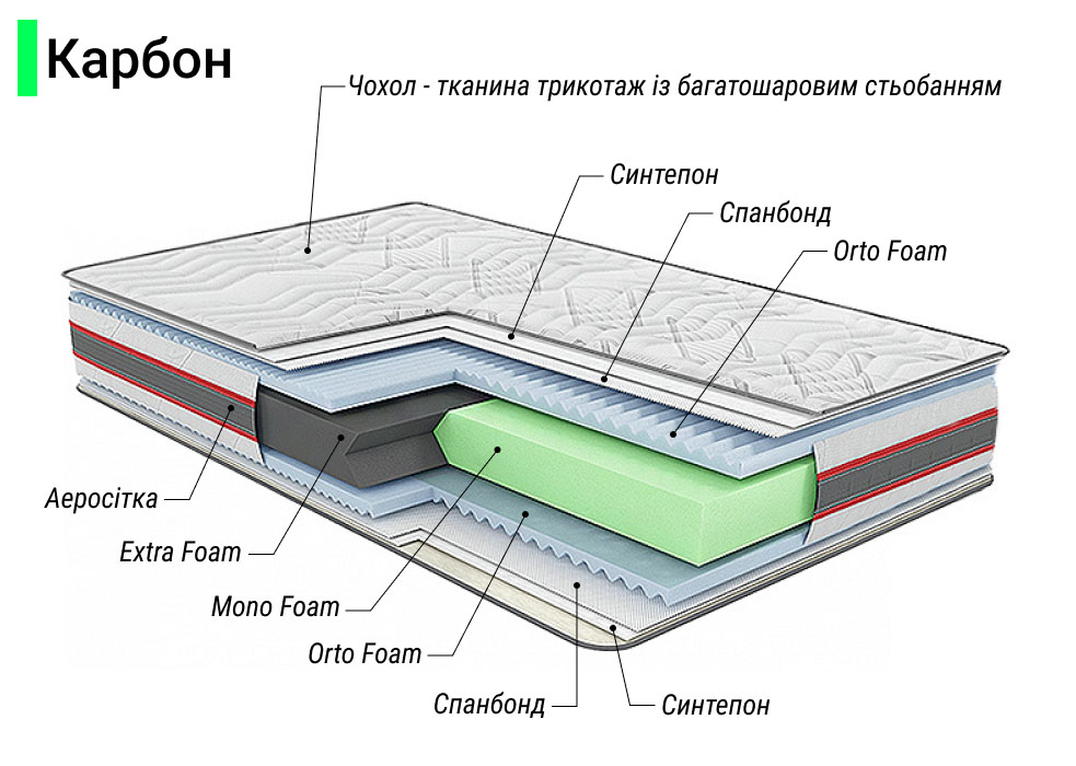 Extra Foam. Это инновационная пена повышенной плотности, жесткости и прочности. Высокие показатели плотности делают матрас устойчивым к высоким нагрузкам.
