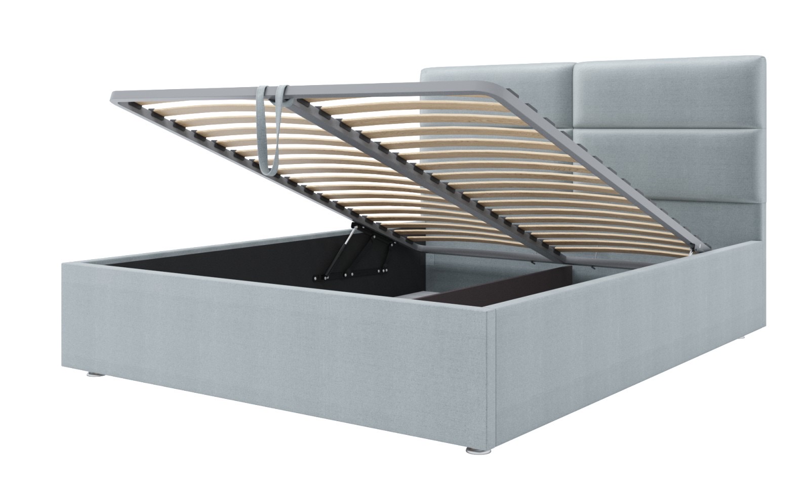 Каркас изготовлен в Украине из качественных материалов — ДСП, металла и буковых ламелей, что обеспечивает прочность и отличную ортопедическую поддержку. Доступна в различных размерах: 90x200, 120x200, 140x200, 160x200 и 180x200 см.