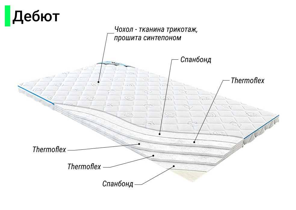 Матрас тонкий полуторный Sweet Sleep Debut 120x190 см • высота 6 см (средняя жесткость)