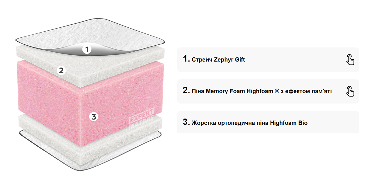 Фото Ортопедический матрас HighFoam Zephyr Lazy Slivki 180x190 - SOFINO.UA