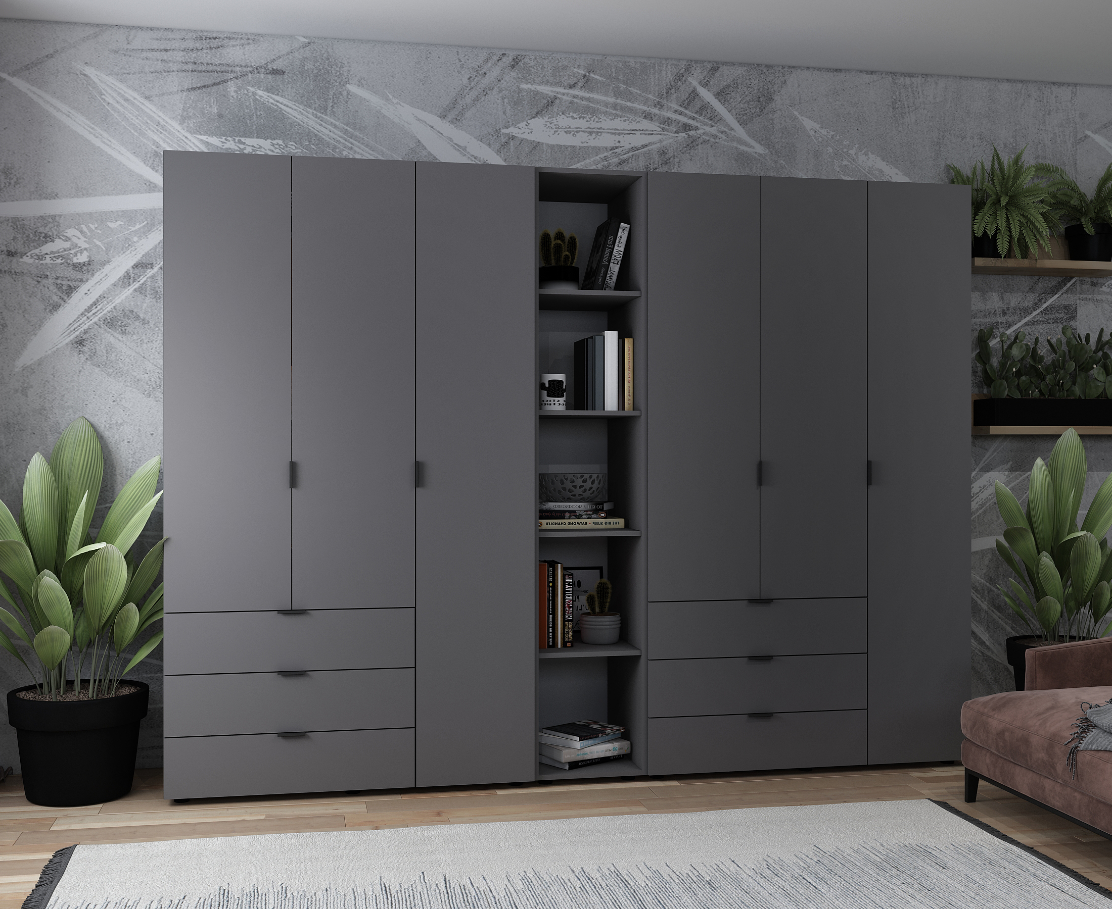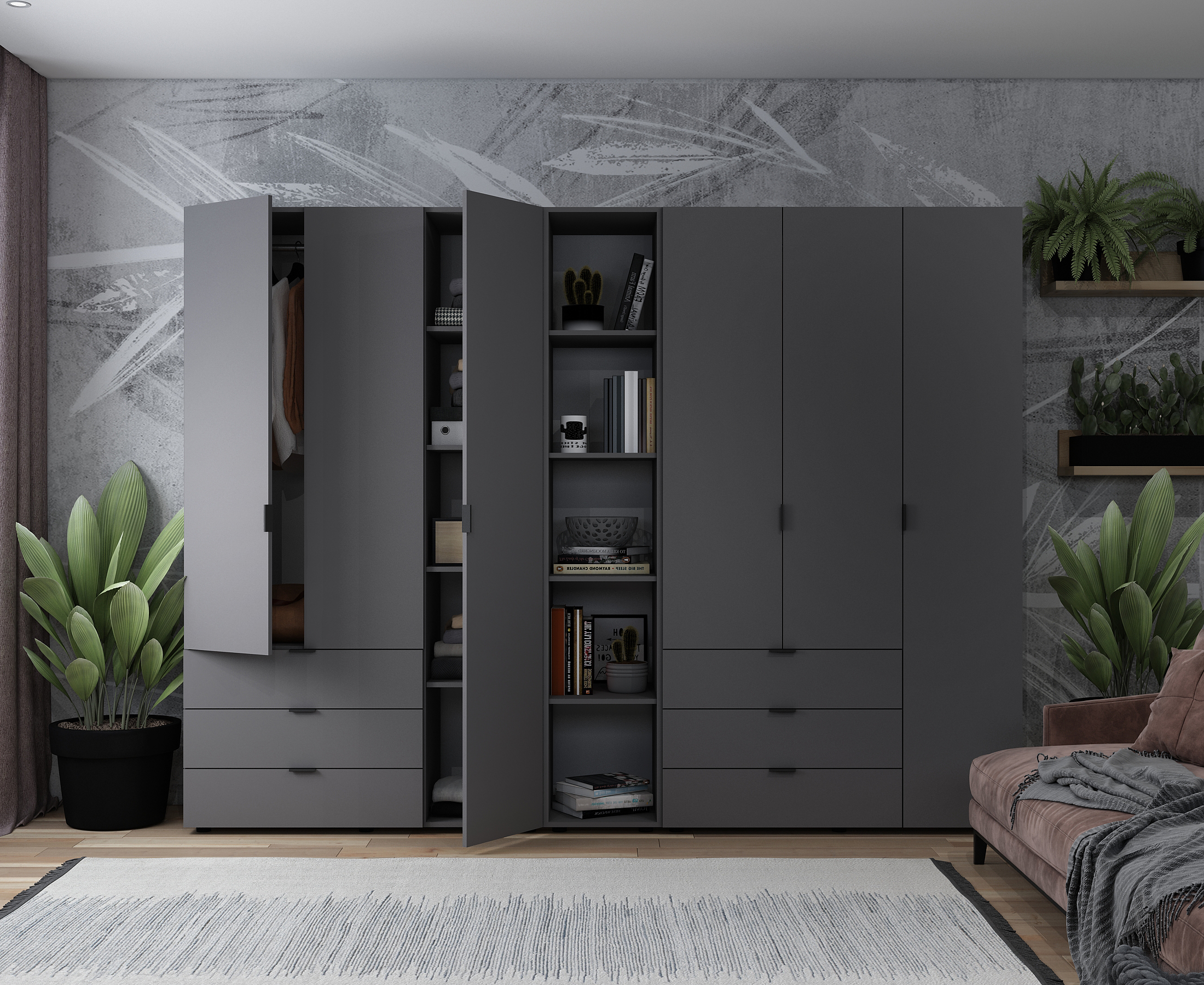 Фото Розпашна Шафа для одягу Doros Гелар з Етажеркою Графіт 3+3 ДСП 270,6х49,5х203,4 (80737652) - SOFINO.UA