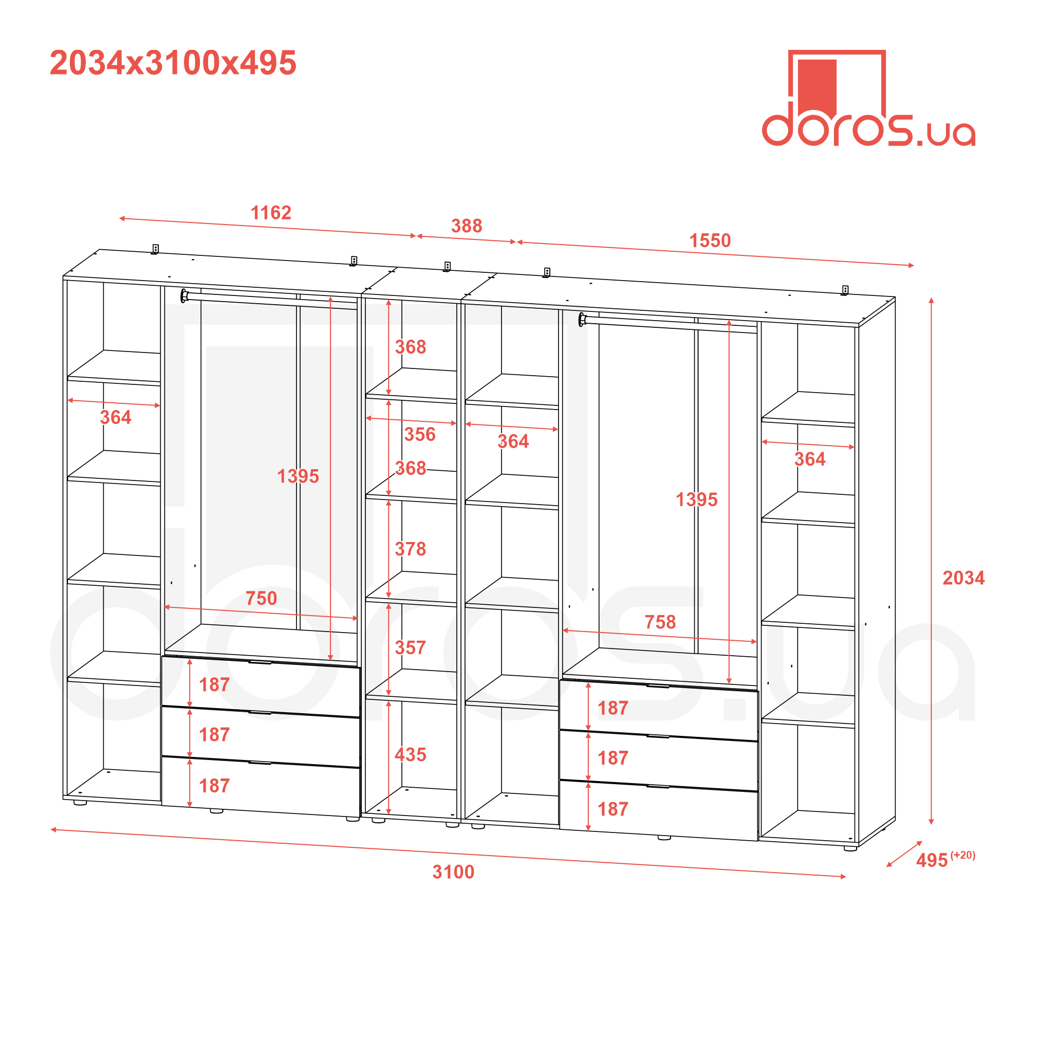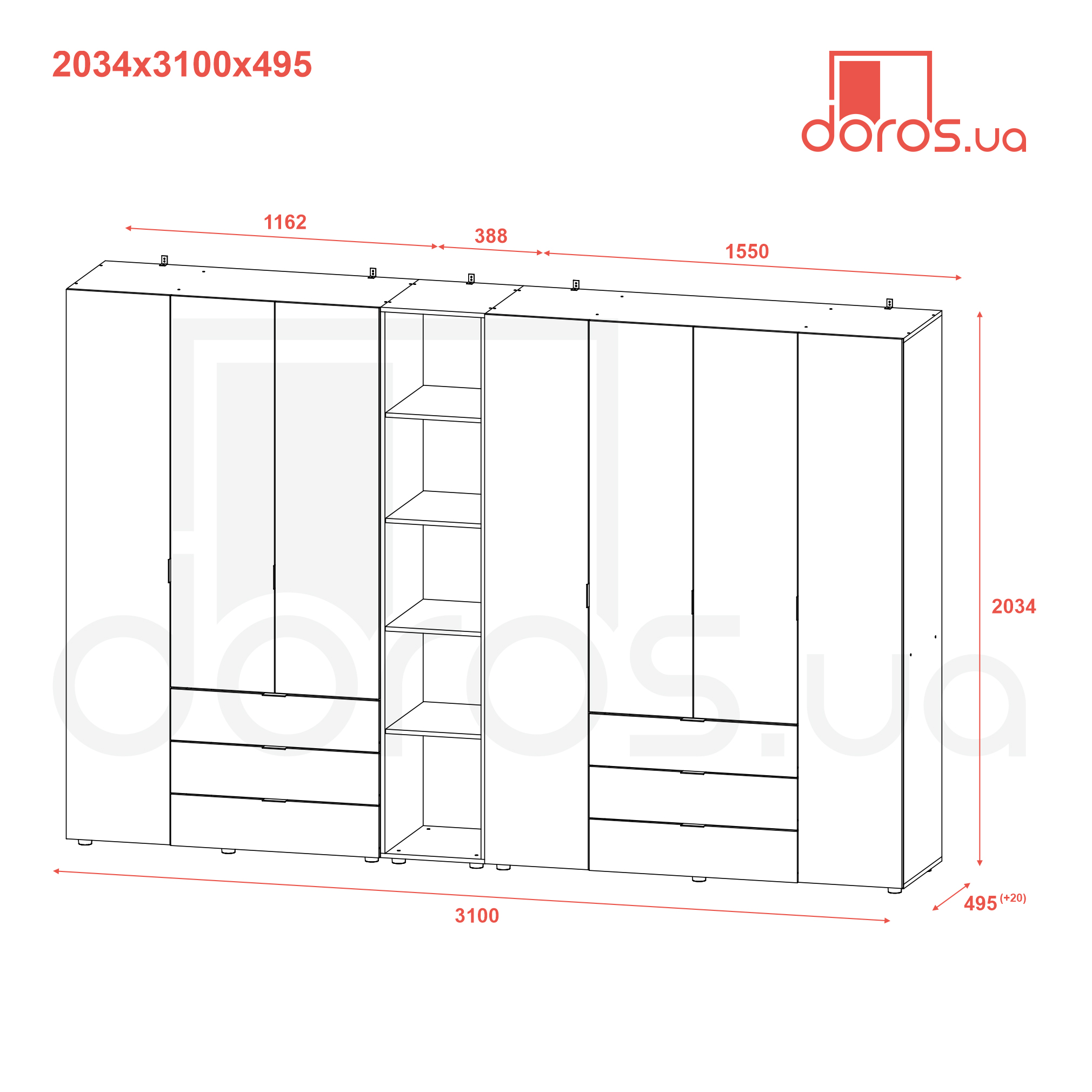 Габариты (ШхДхВ), мм3094х495х2034 мм