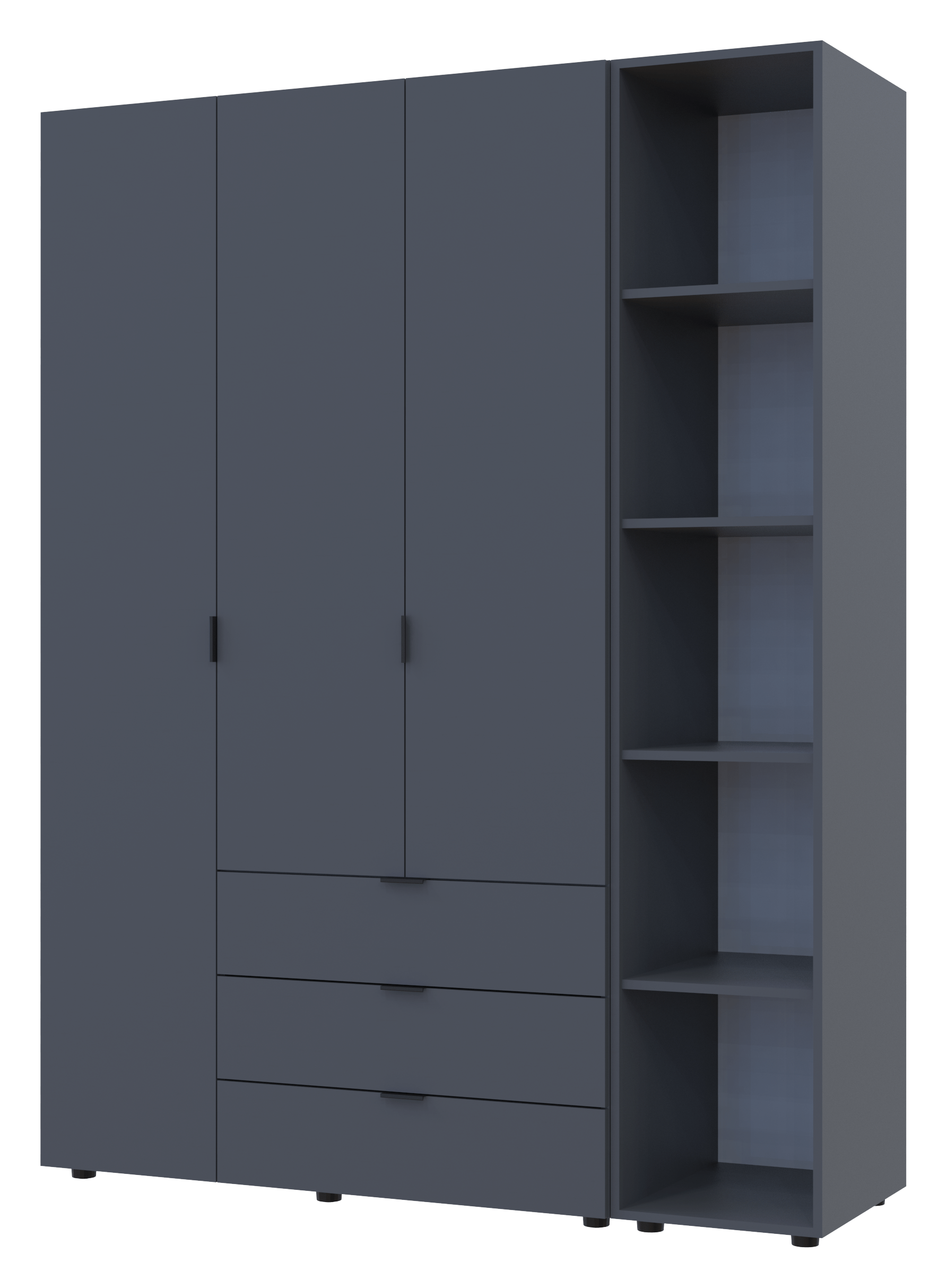 Фото Розпашна Шафа для одягу Doros Гелар з Етажеркою Графіт 3 ДСП 154,4х49,5х203,4 (80737645) - SOFINO.UA