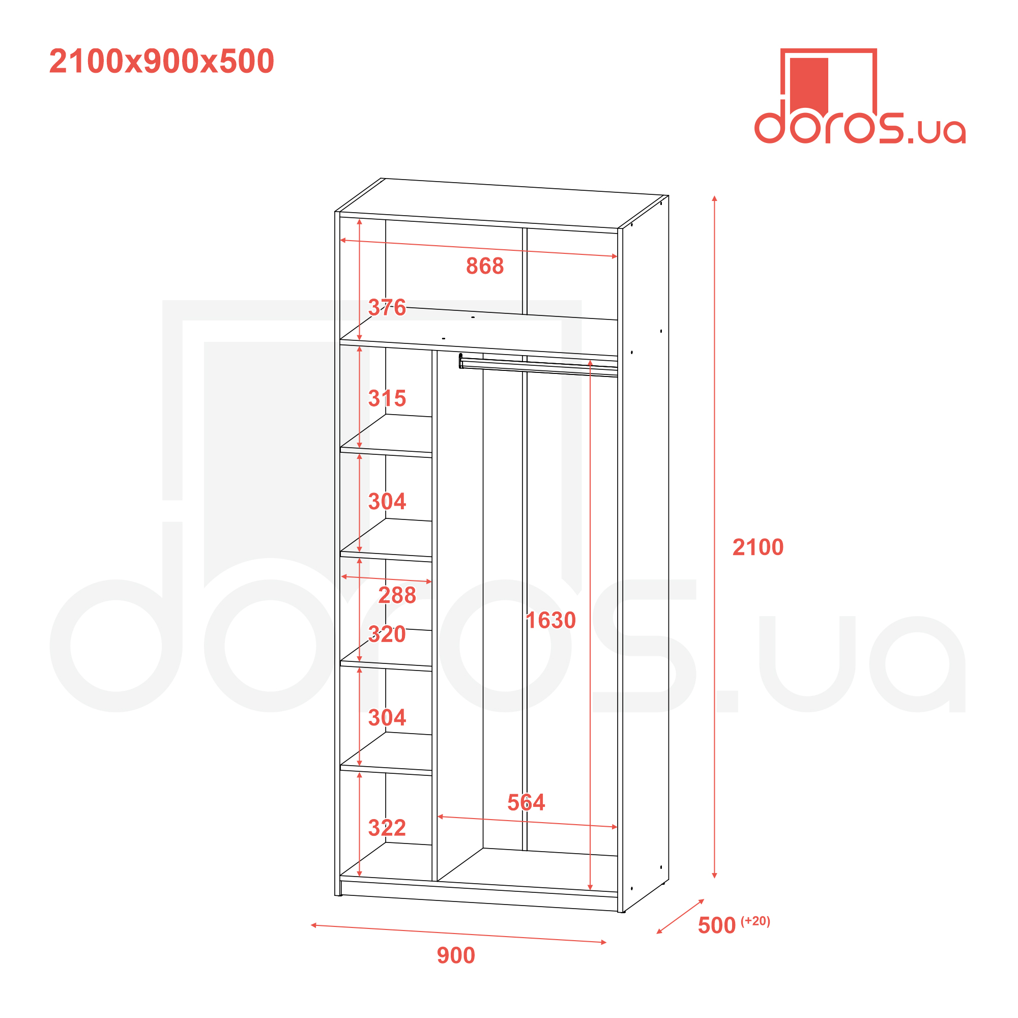 Габариты (ШхДхВ), мм900х520х2100 мм