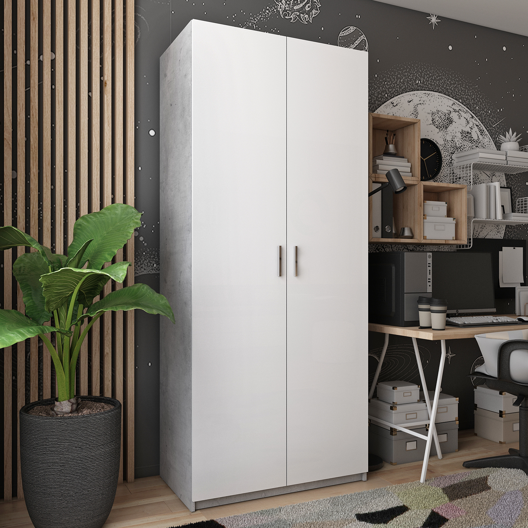 Фото Розпашна Шафа для одягу Doros Кен Бетон / Білий 2 ДСП 90х52х210 (80737020) - SOFINO.UA