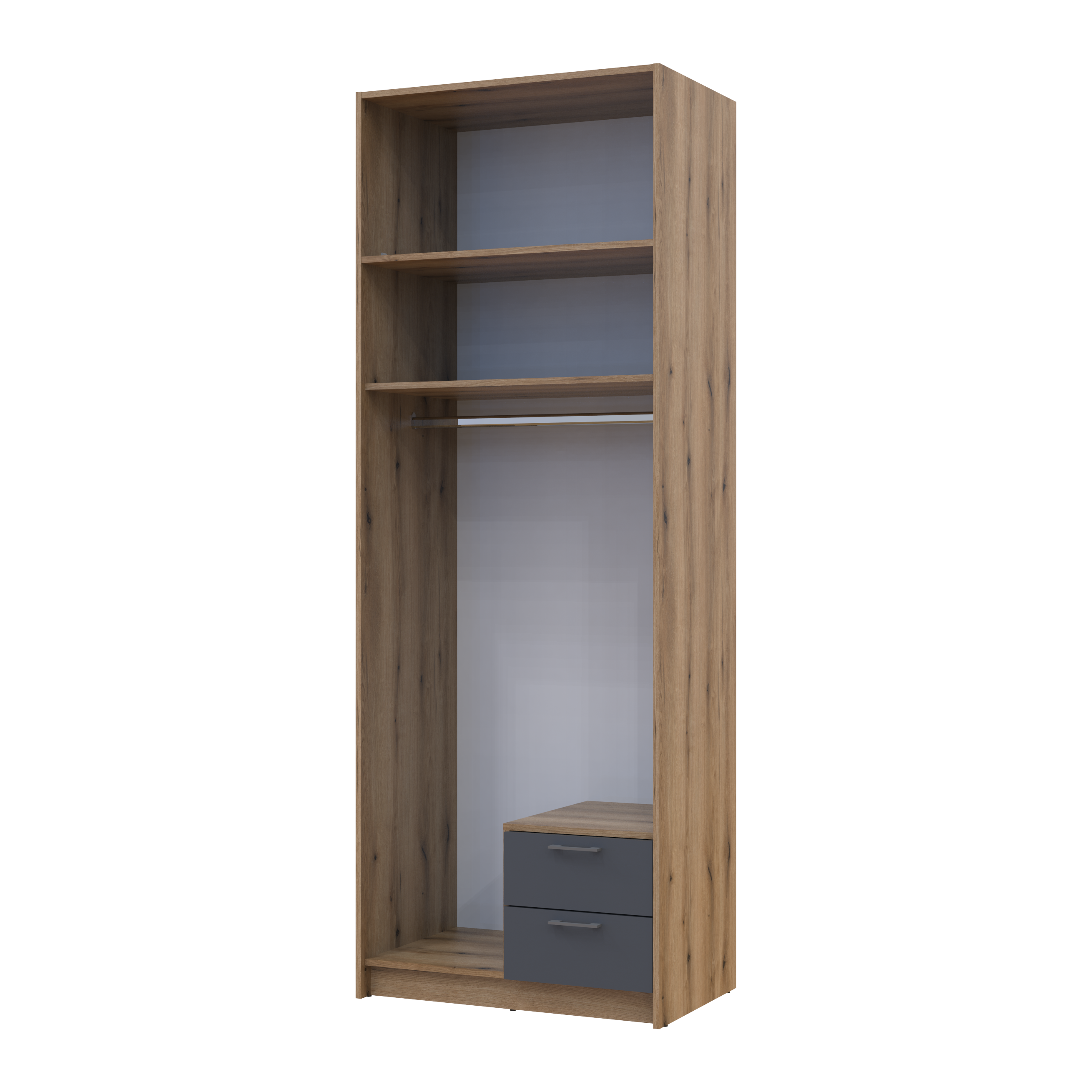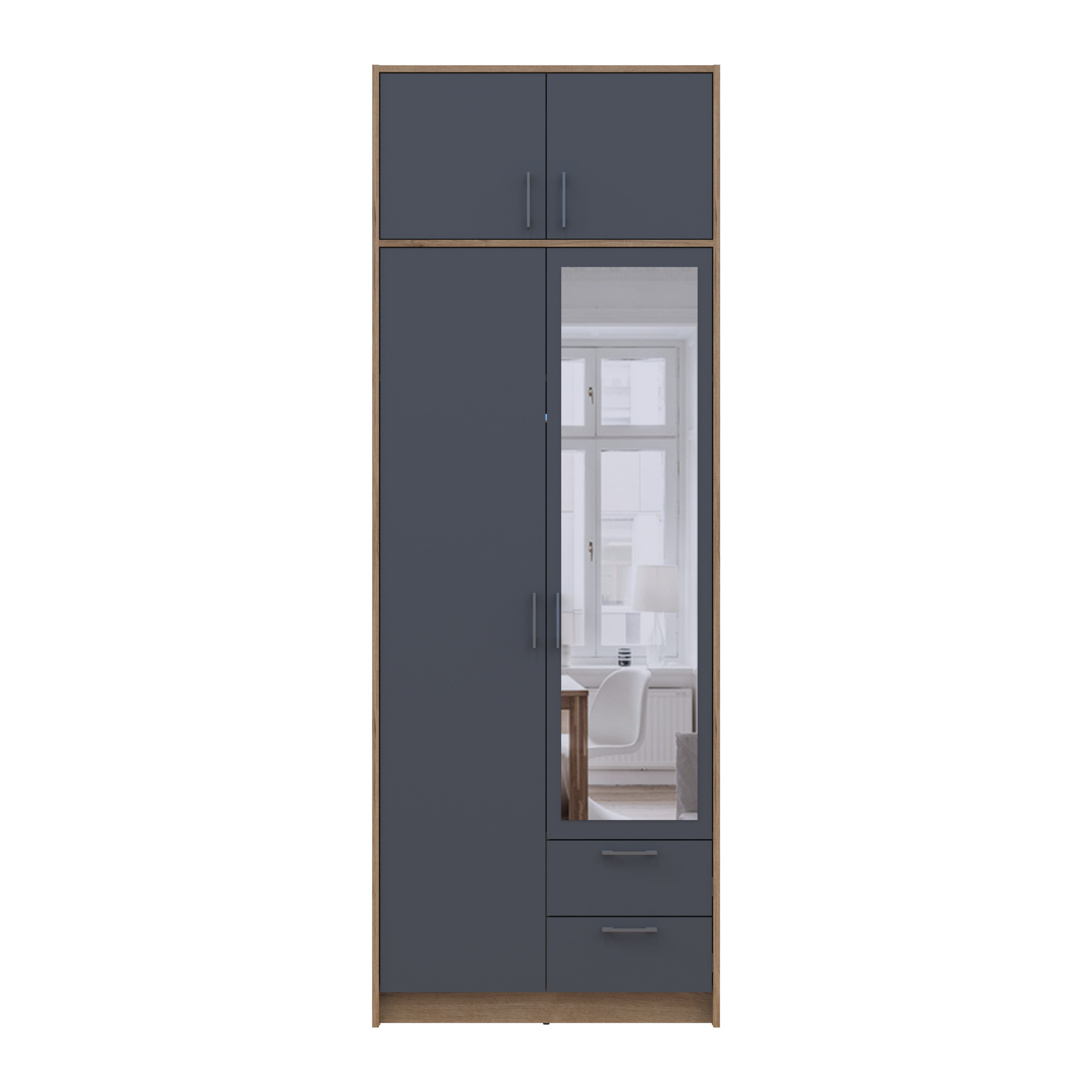 Розпашна Шафа для одягу Doros Ронді з антресолею та дзеркалом Дуб Артізан/Графіт 2ДСП 82х52х236 (80737810)