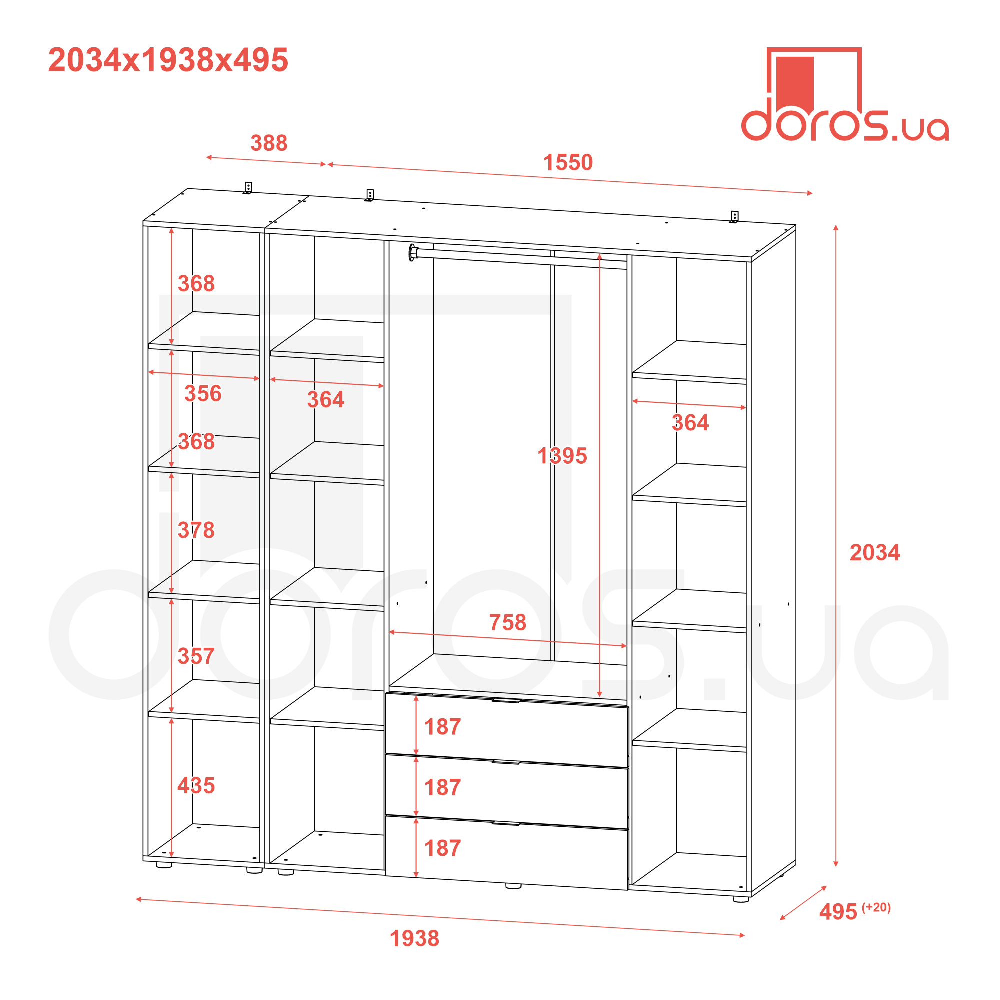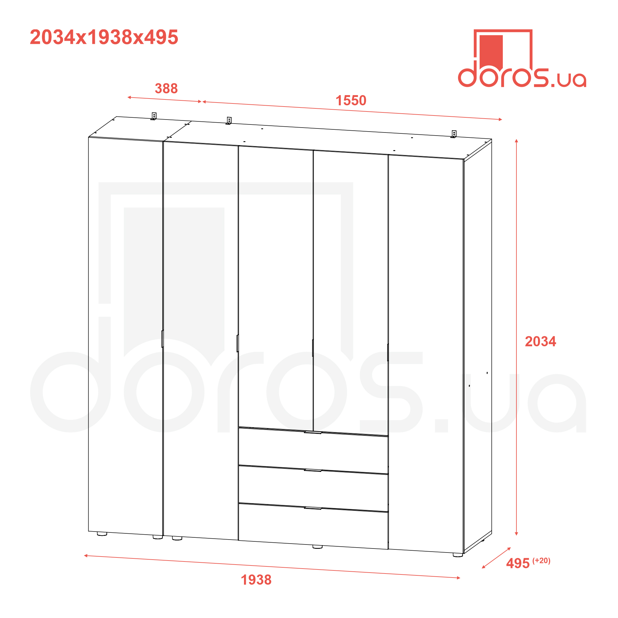 Шафа для одягу Doros Гелар Графіт 4ДСП/Дзеркало 194х49.5х203.4 (42002161)