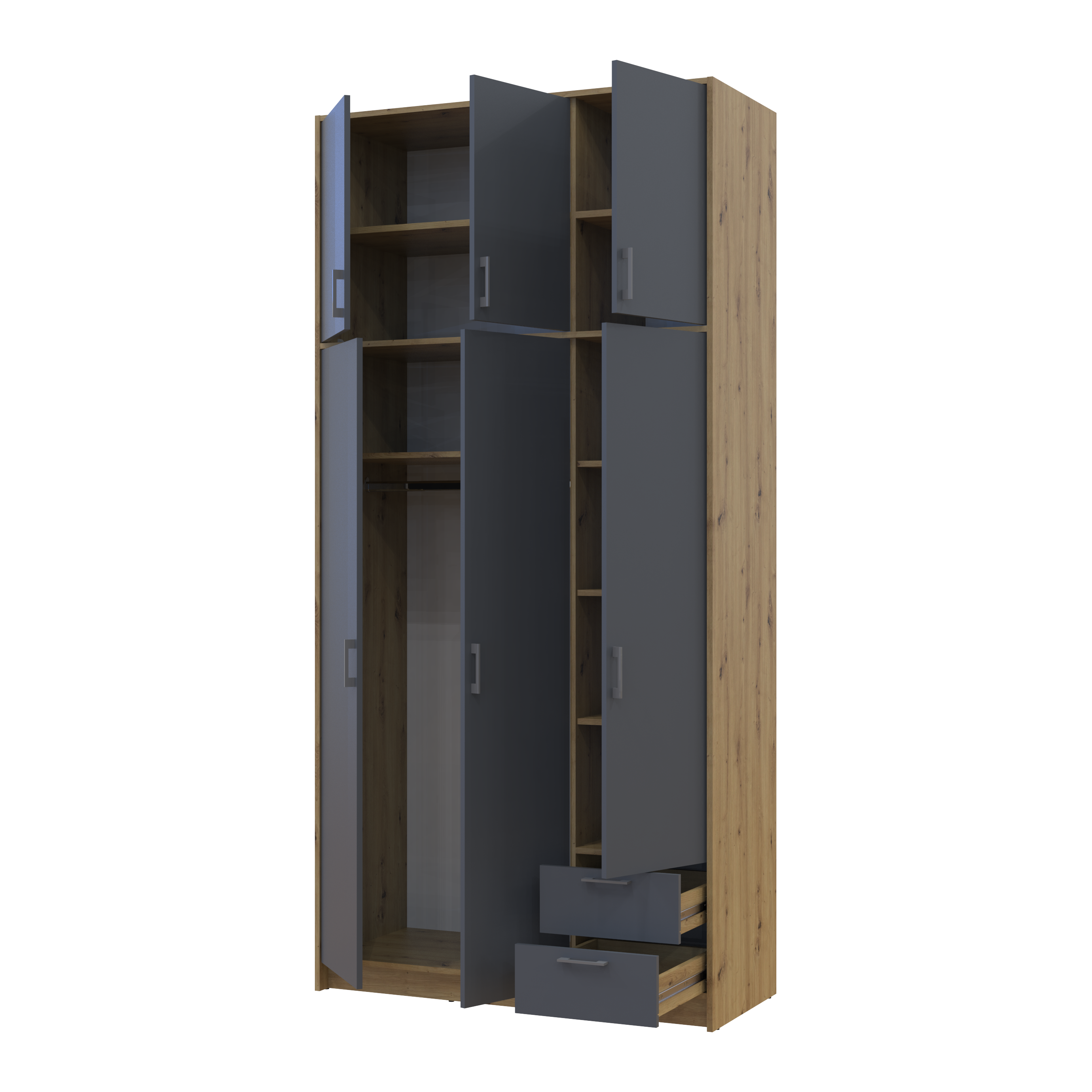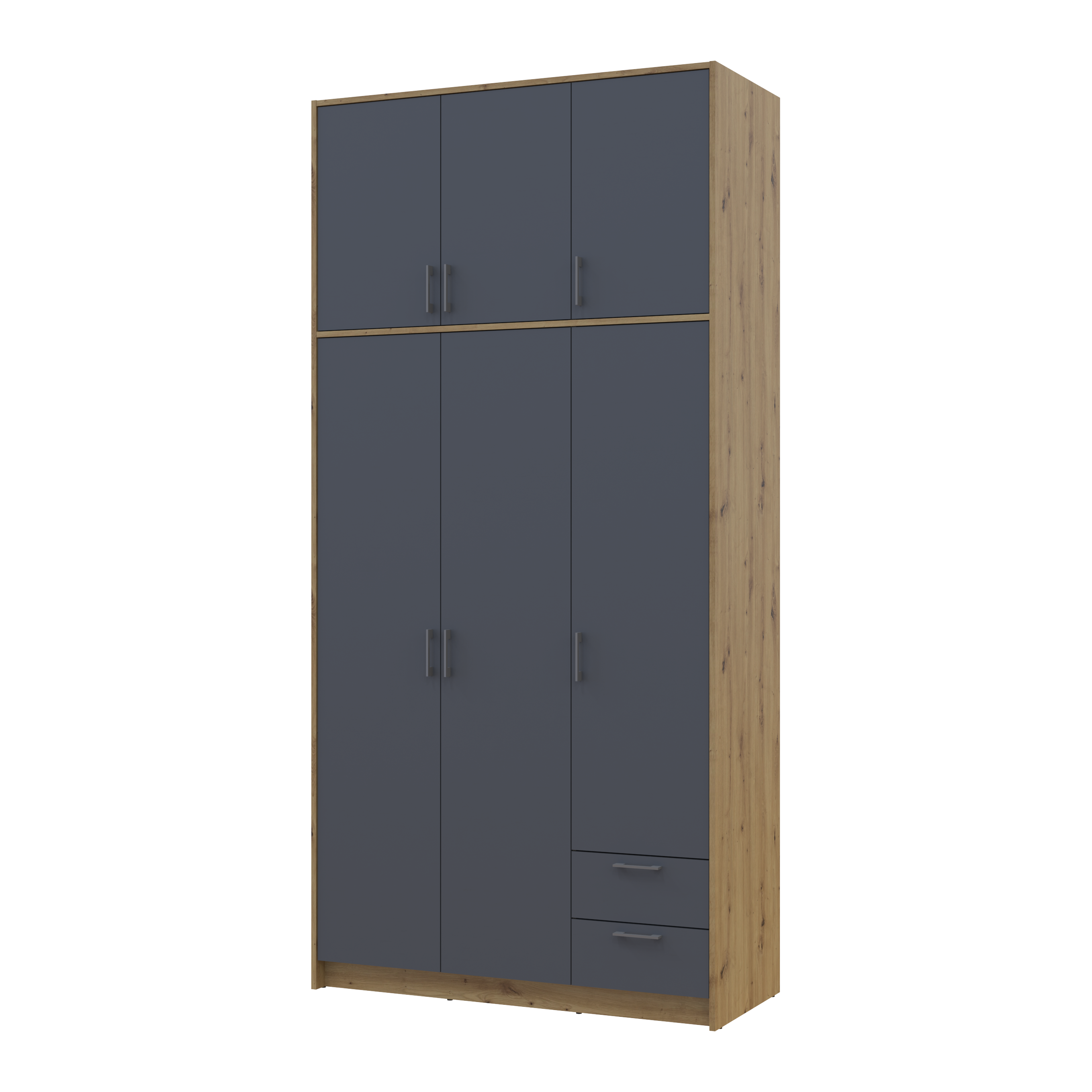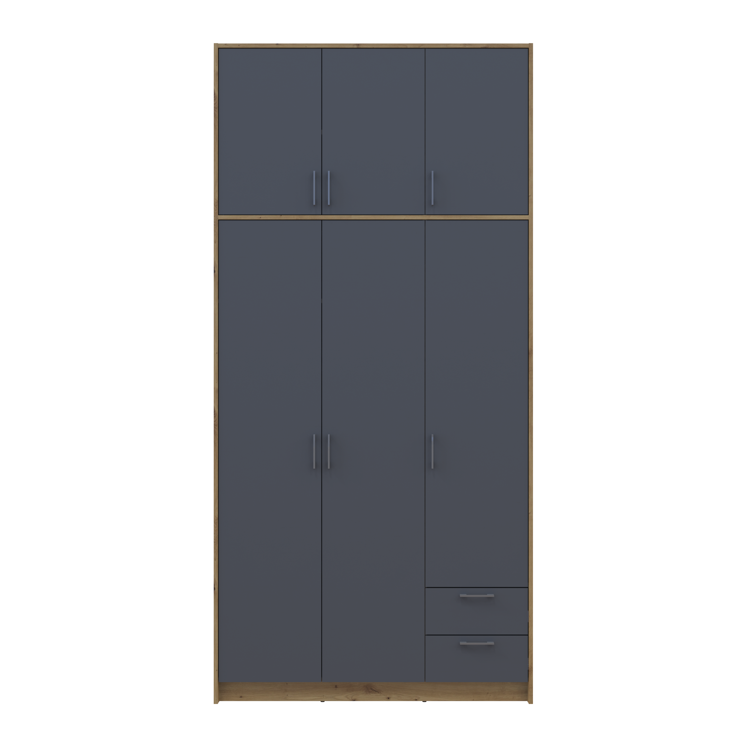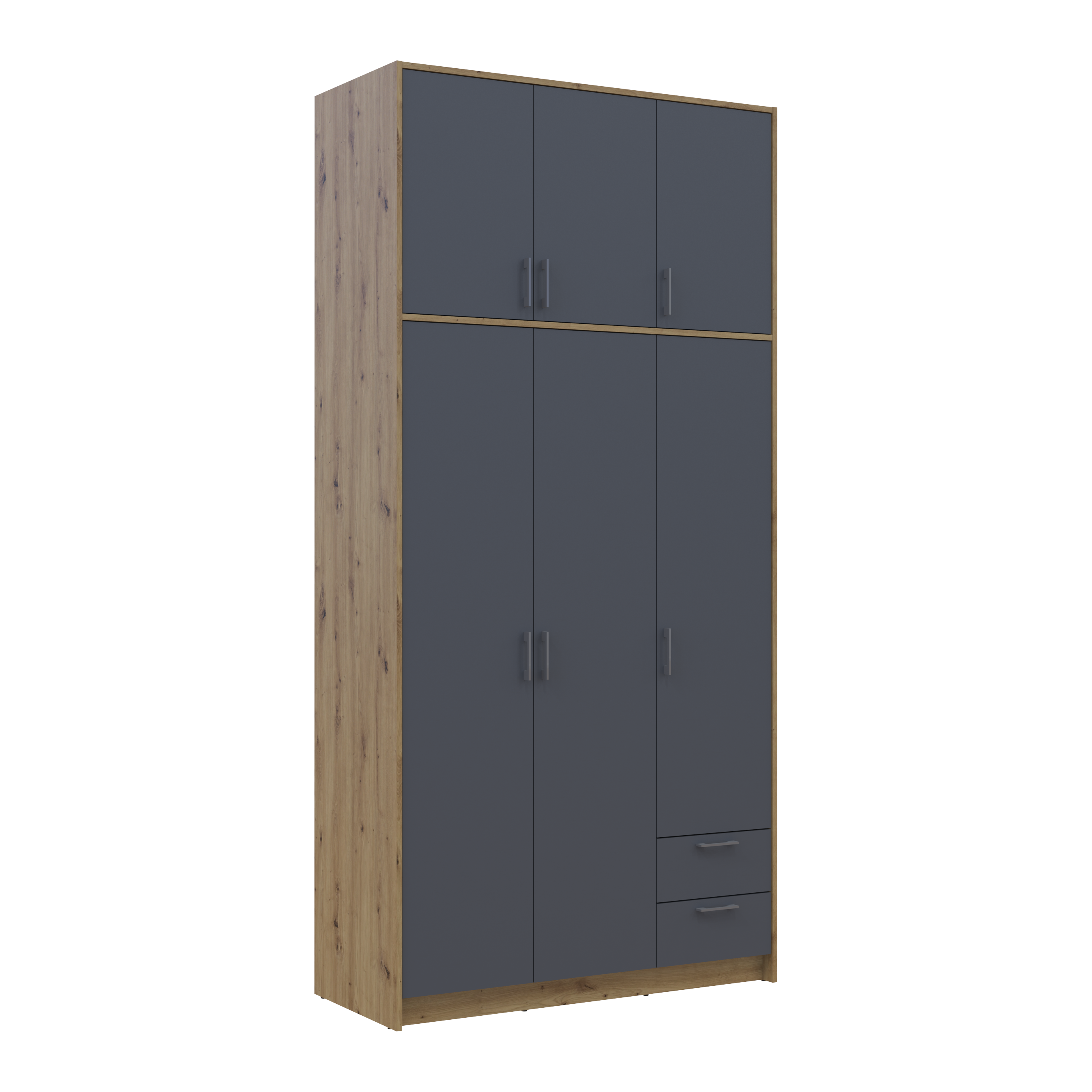 Фото Шафа для одягу Doros Ронді з високою антресолею Дуб Артізан/Графіт 3 ДСП 121х52х260 (42005187) - SOFINO.UA