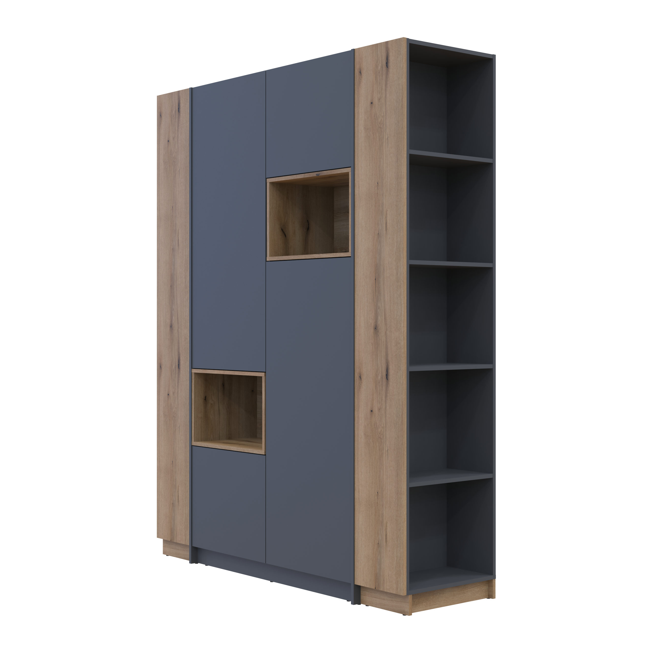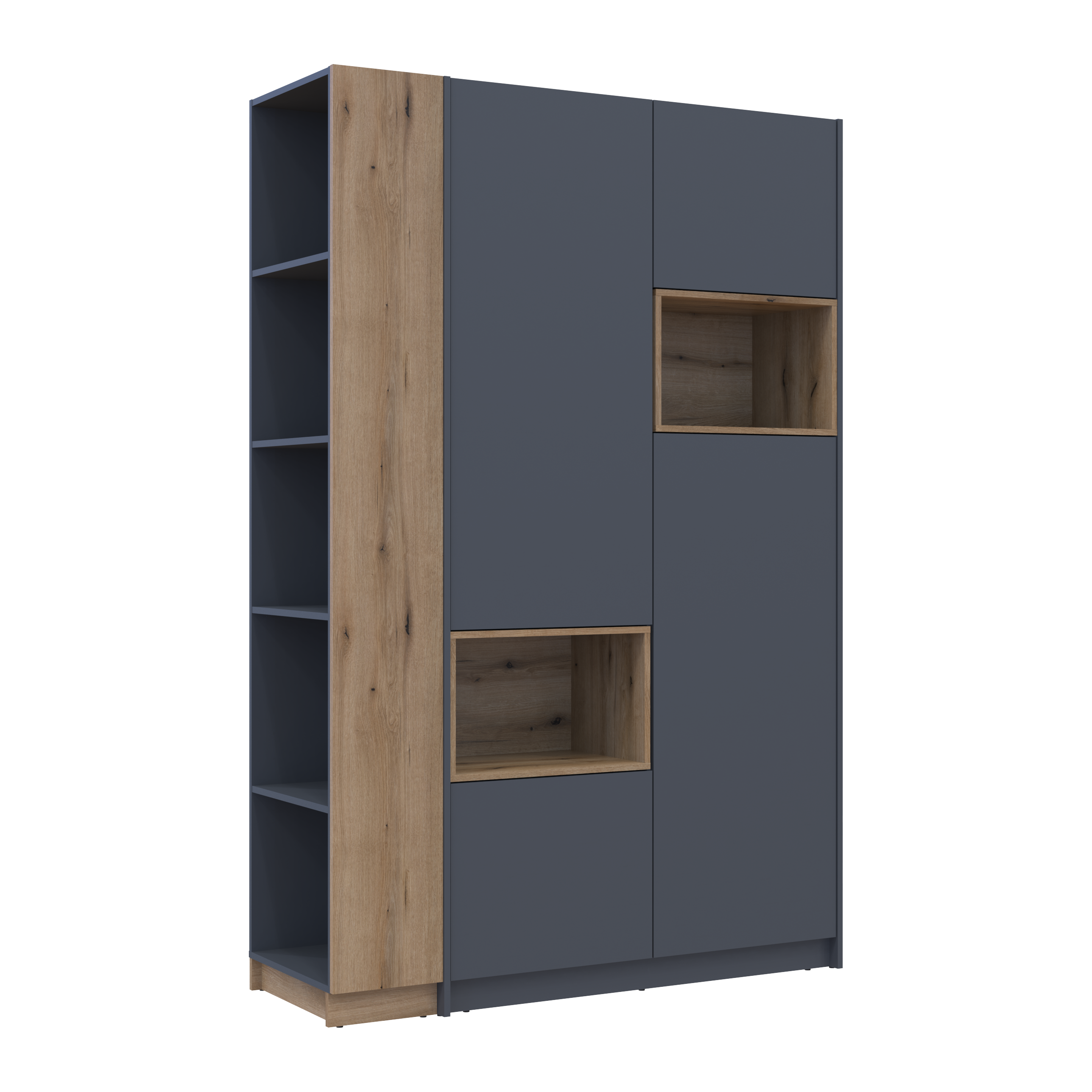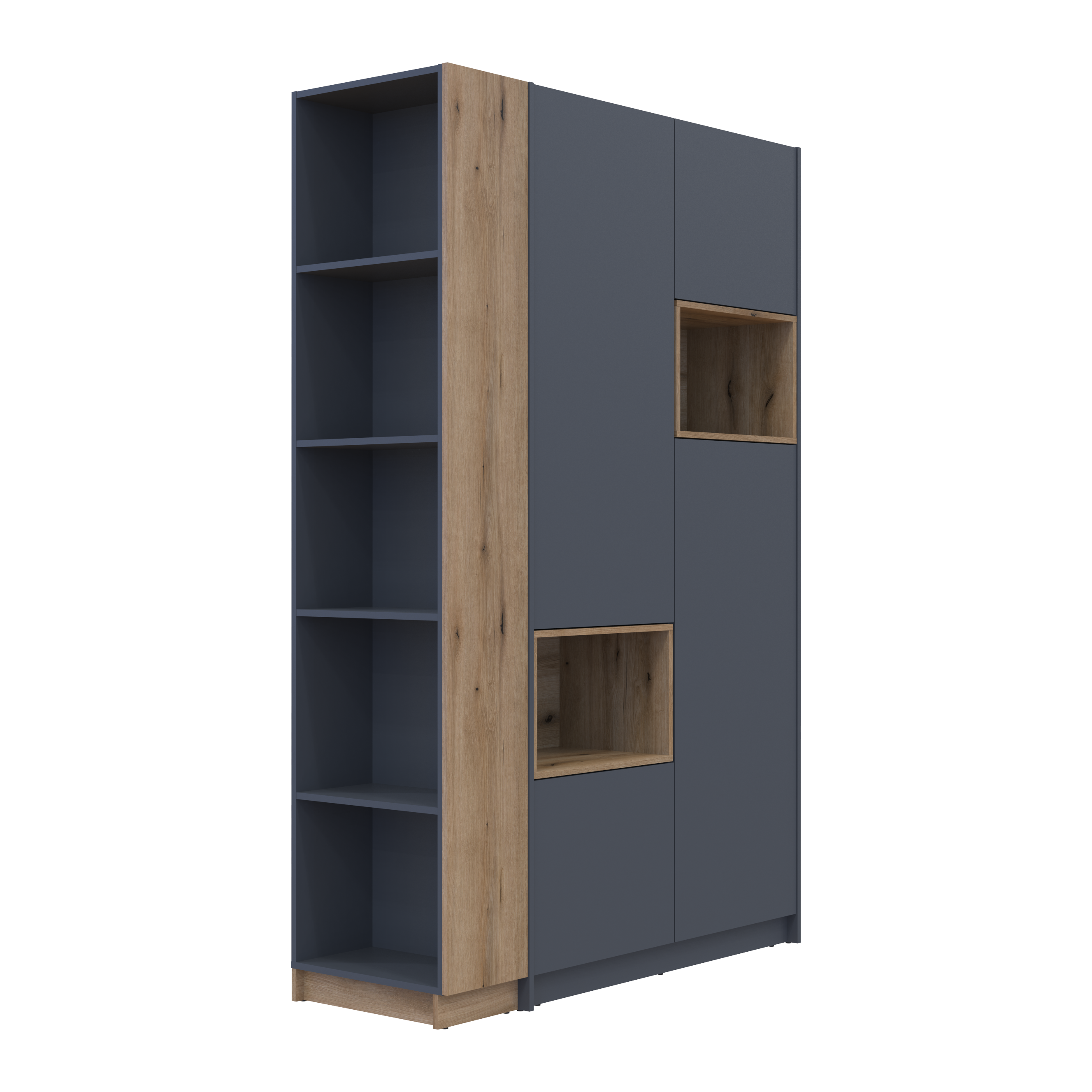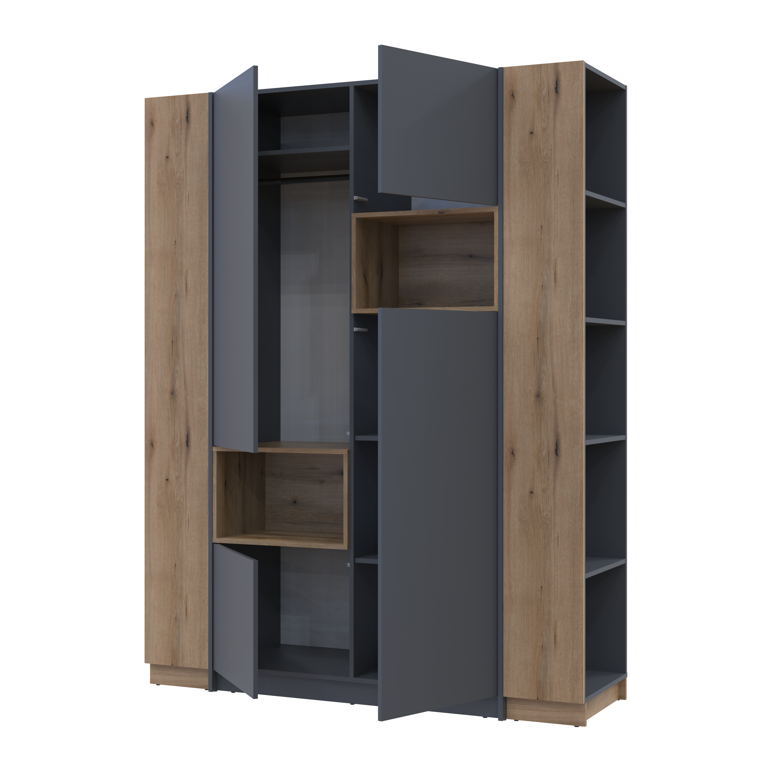 Фото Шафа для одягу з нішею та етажеркою Doros Дейл Графіт/Дуб Евок 2 ДСП 143.2х52х220 (42005154) - SOFINO.UA