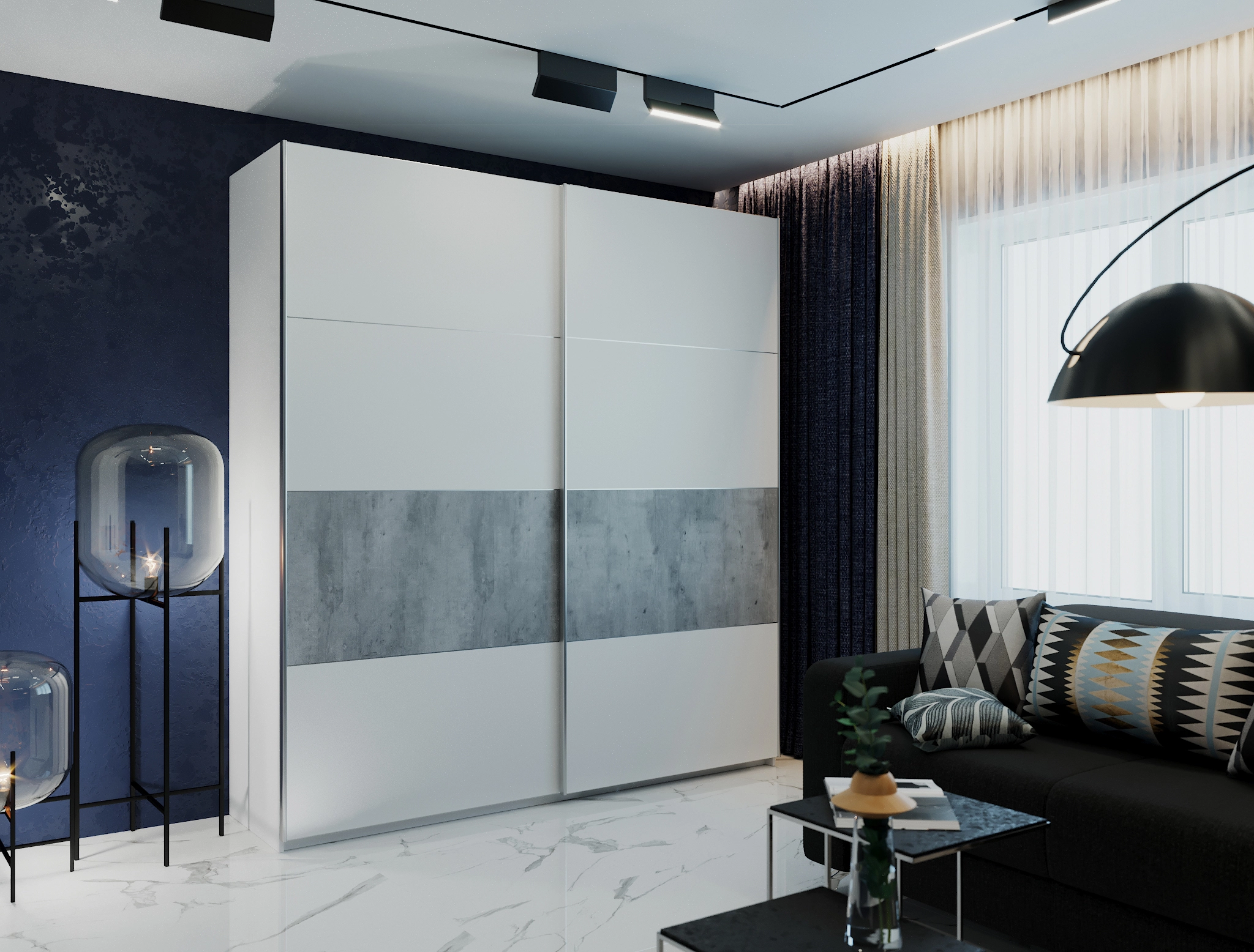 Шафа купе Doros G-Caiser Білий / Білий вставка Бетон 2 ДСП / 4 частини 220х60х240
