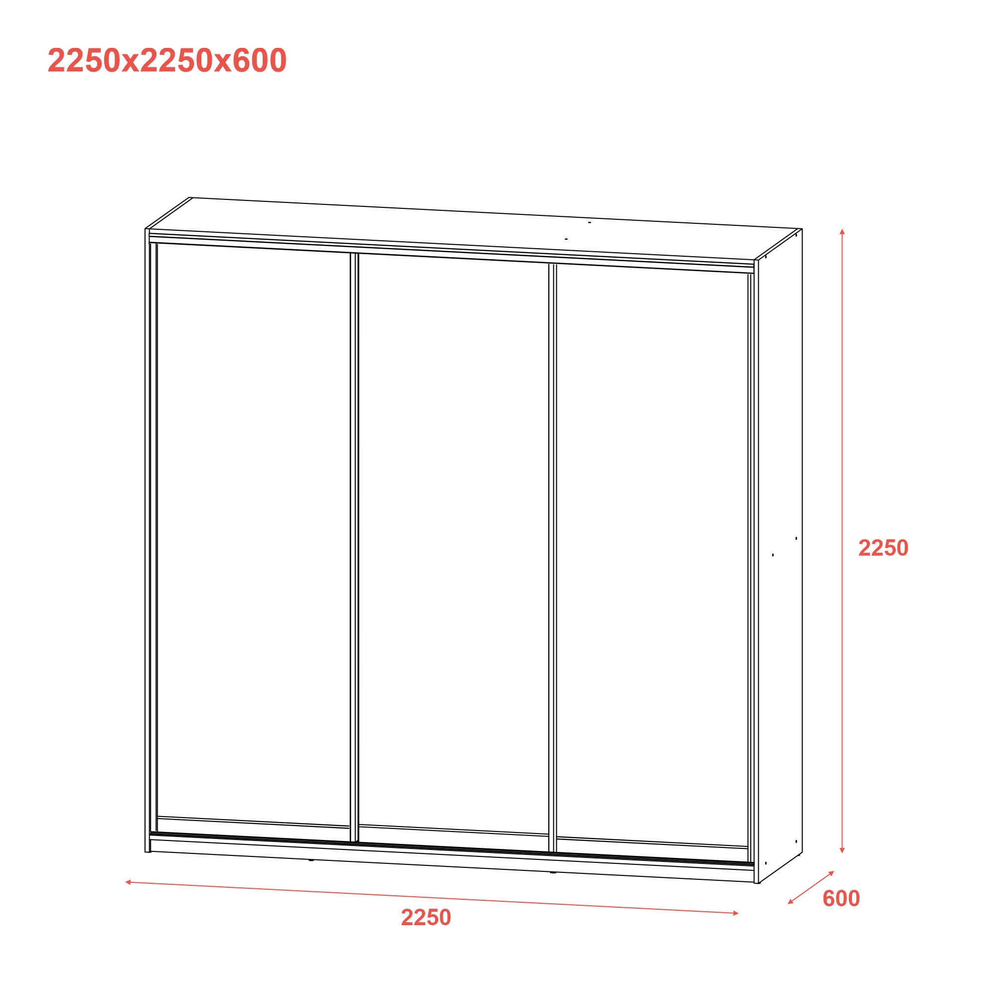 Шафа купе Doros Сіті Лайт Біле дерево 1 ДСП / 2 Дзеркала 225х60х225