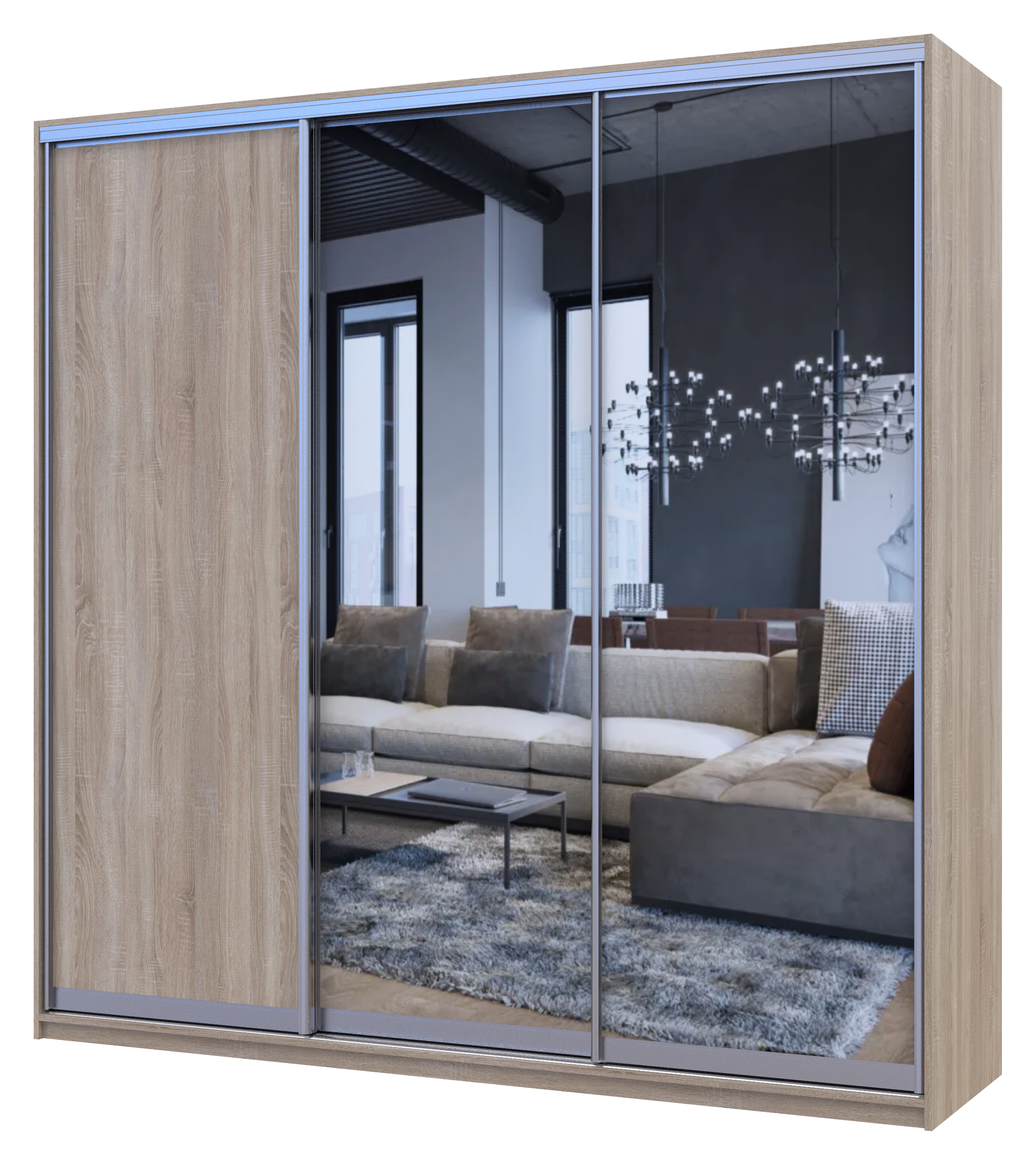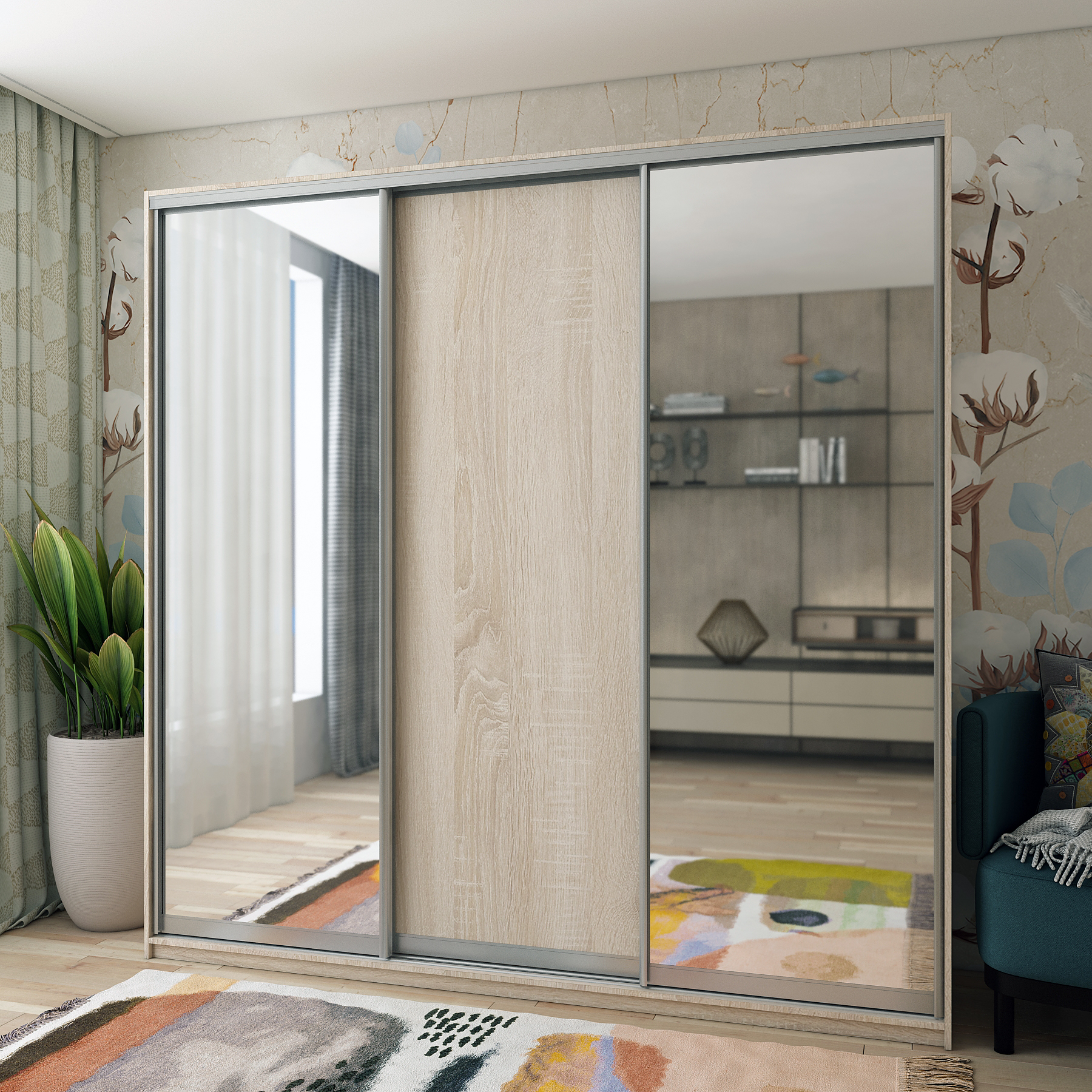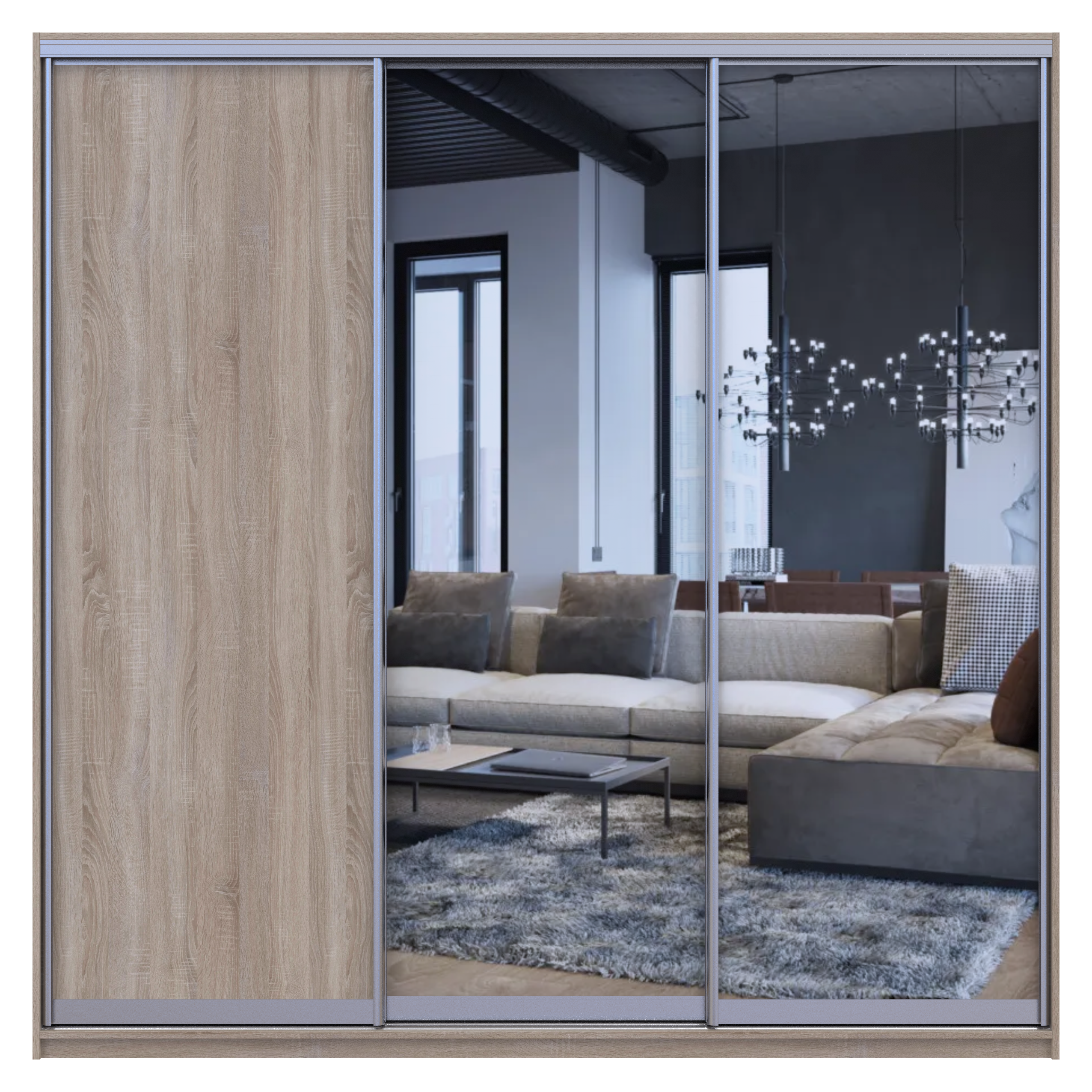 Фото Шафа купе Doros Сіті Лайт Дуб сонома 1 ДСП / 2 дзеркала 225х60х225 - SOFINO.UA