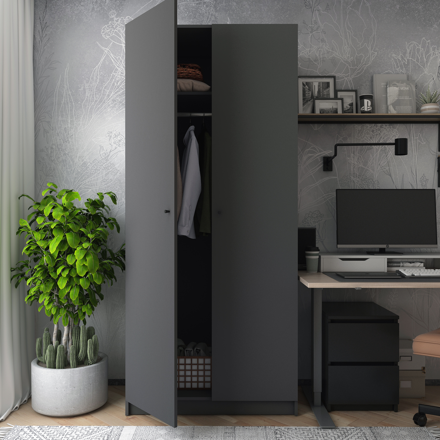 Фото Шафа для одягу Doros Промо Графіт 2 ДСП 90х48х204 (80737764) - SOFINO.UA
