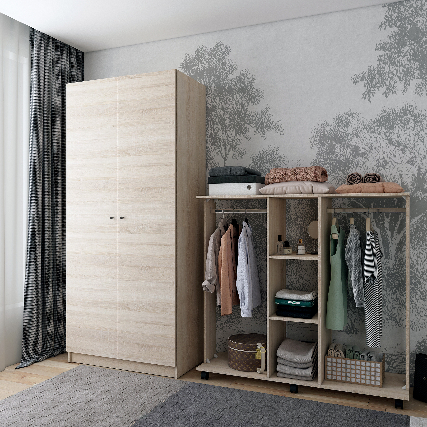 Фото Шафа для одягу Doros Promo з полицями Дуб Сонома 2 ДСП 90х48х204 (80737670) - SOFINO.UA
