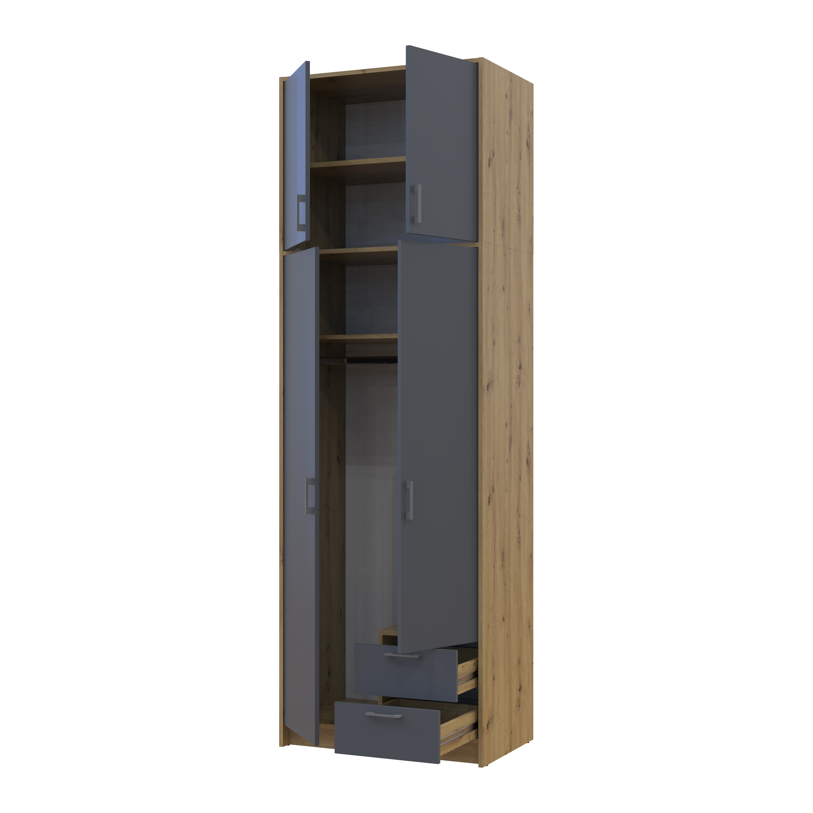 Фото Шафа для одягу Doros Ронді з високою антресолею Дуб Артізан/Графіт 2 ДСП 82х52х260 (42005186) - SOFINO.UA