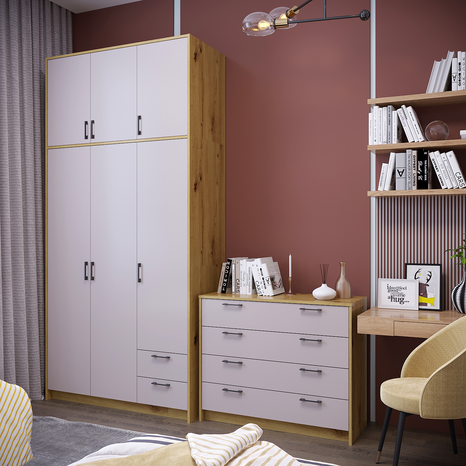 Фото Шафа для одягу Doros Ронді з високою антресолею Дуб Артізан/Кашемір 3 ДСП 121х52х260 (42005193) - SOFINO.UA
