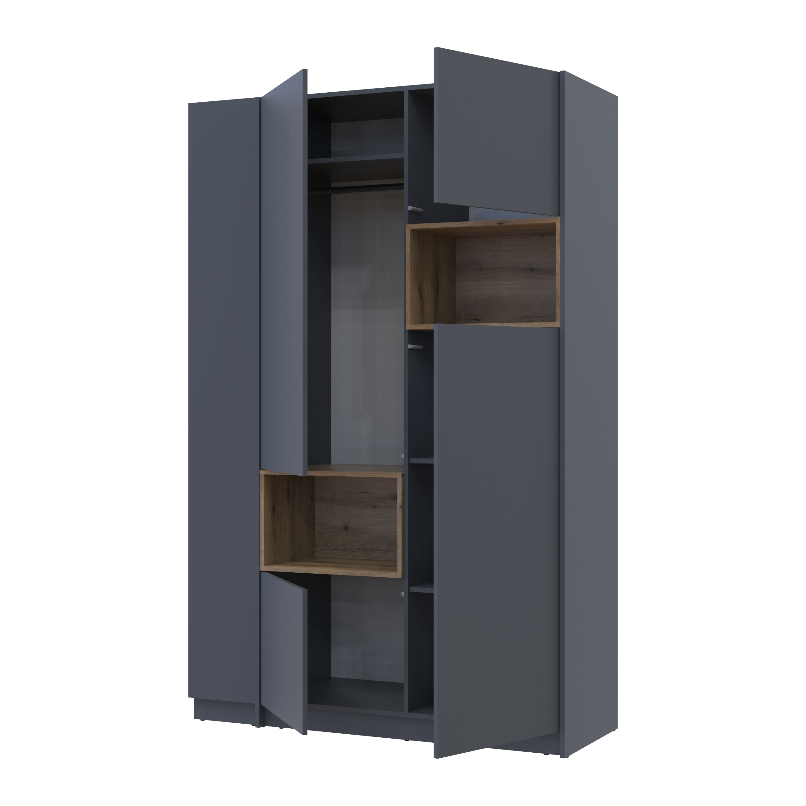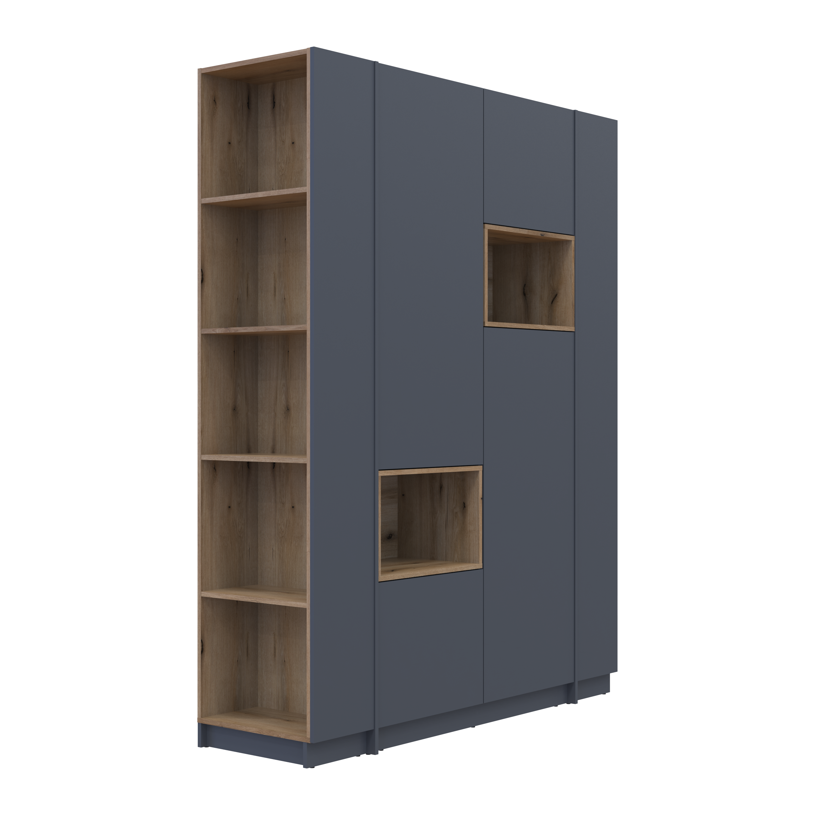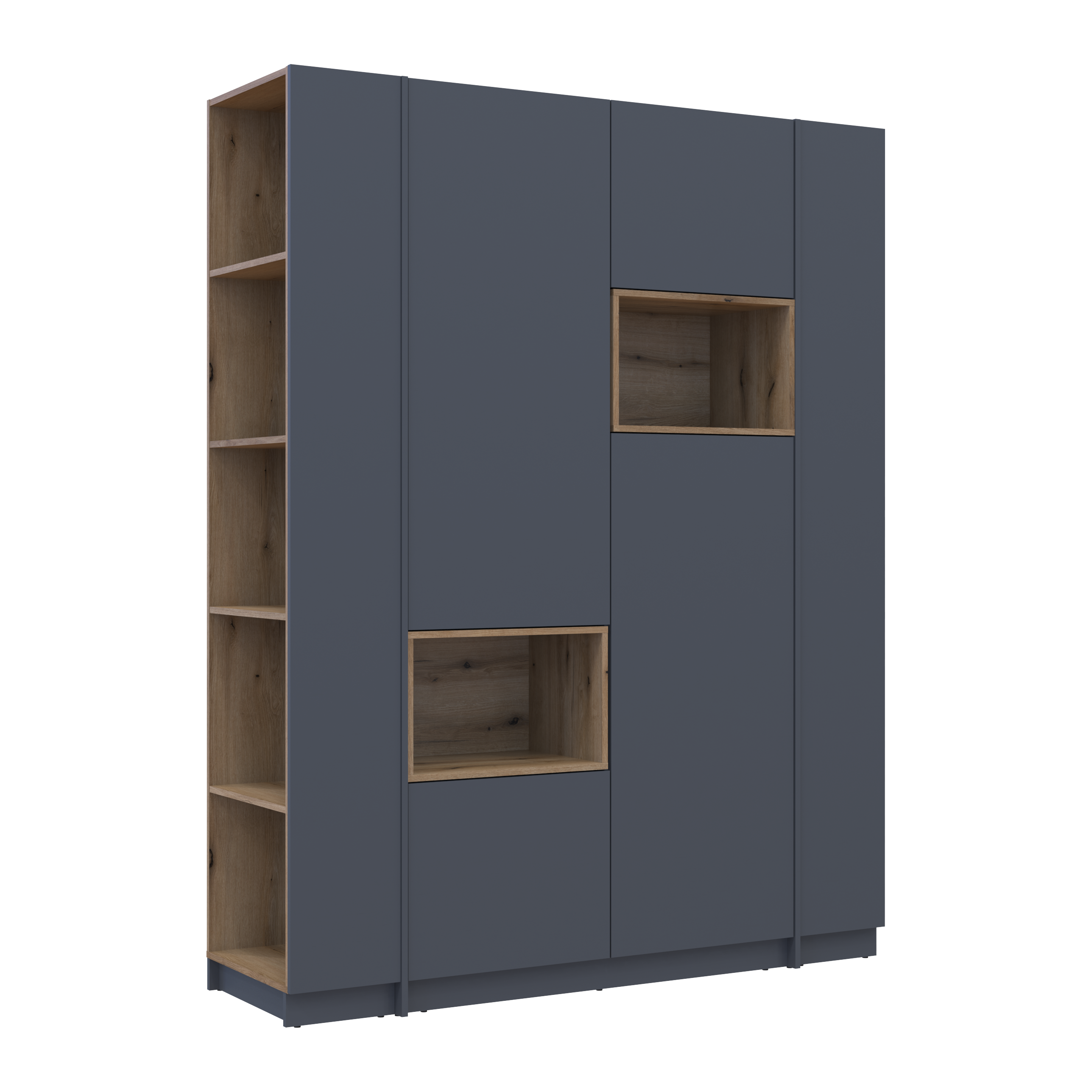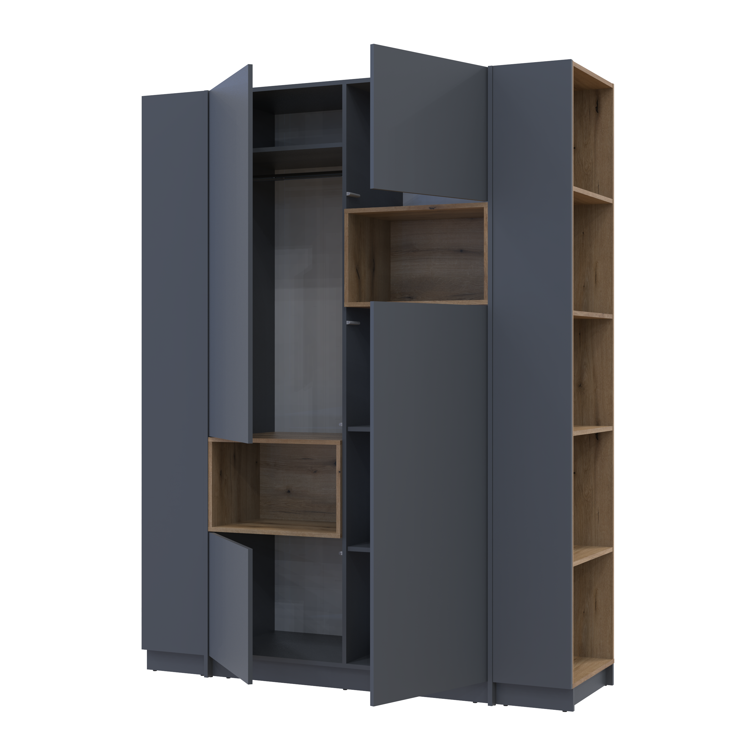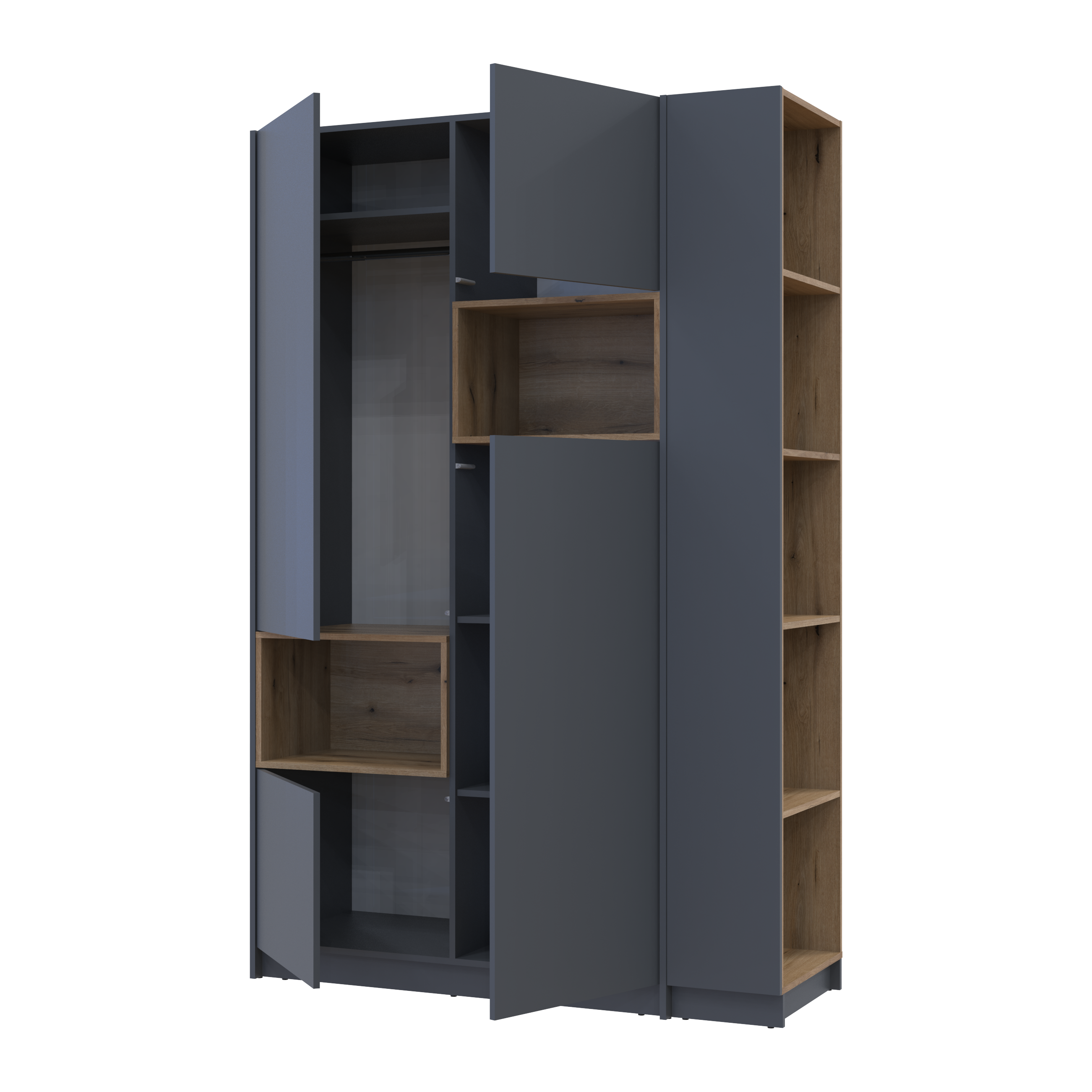 Фото Шафа для одягу з нішею та етажеркою Doros Дейл Графіт/Дуб Евок 2 ДСП 143.2х52х220 (44900335) - SOFINO.UA