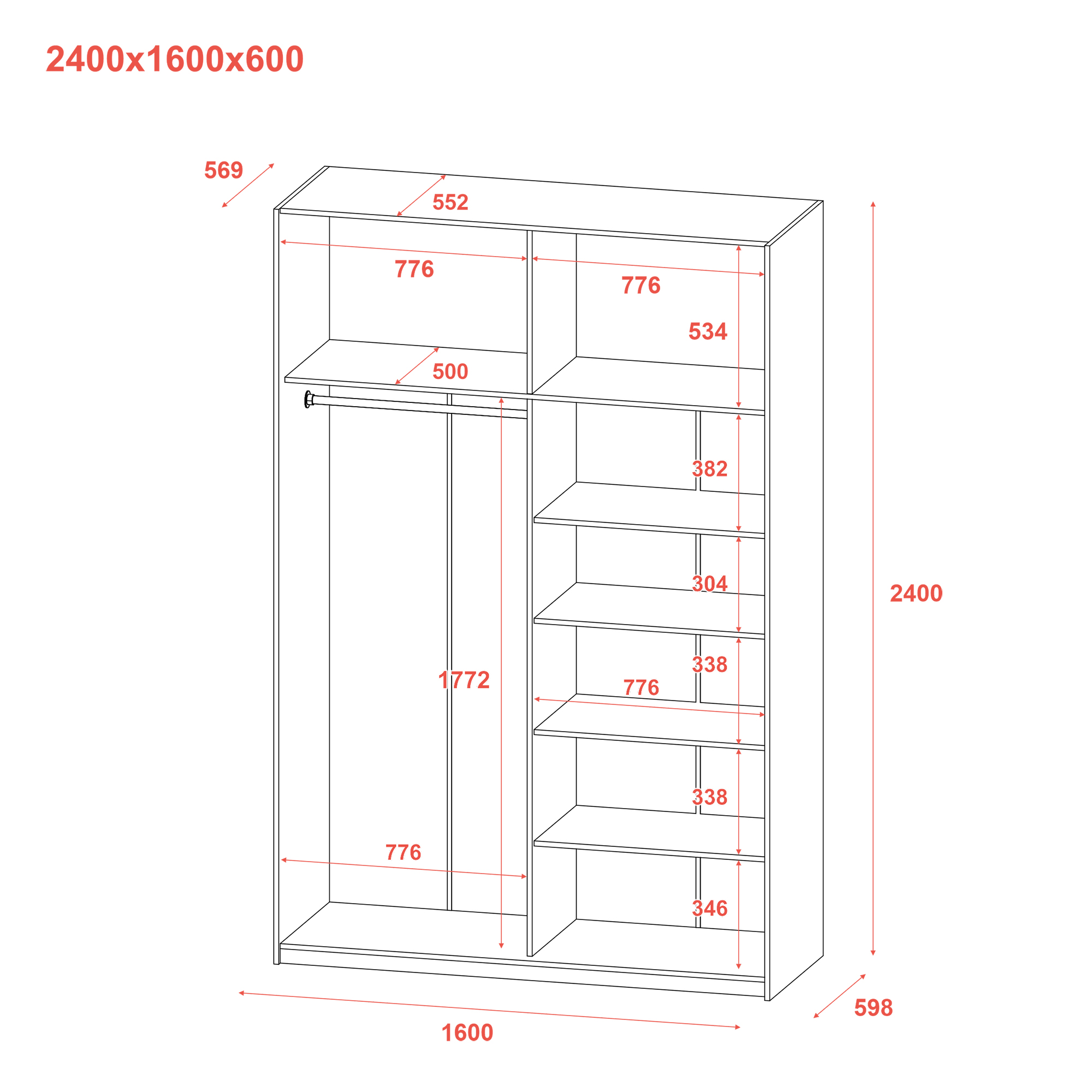Фото Шафа купе Doros G-Caiser Графіт Дуб Евок 1 ДСП / 1 Дзеркало 160х60х240 - SOFINO.UA