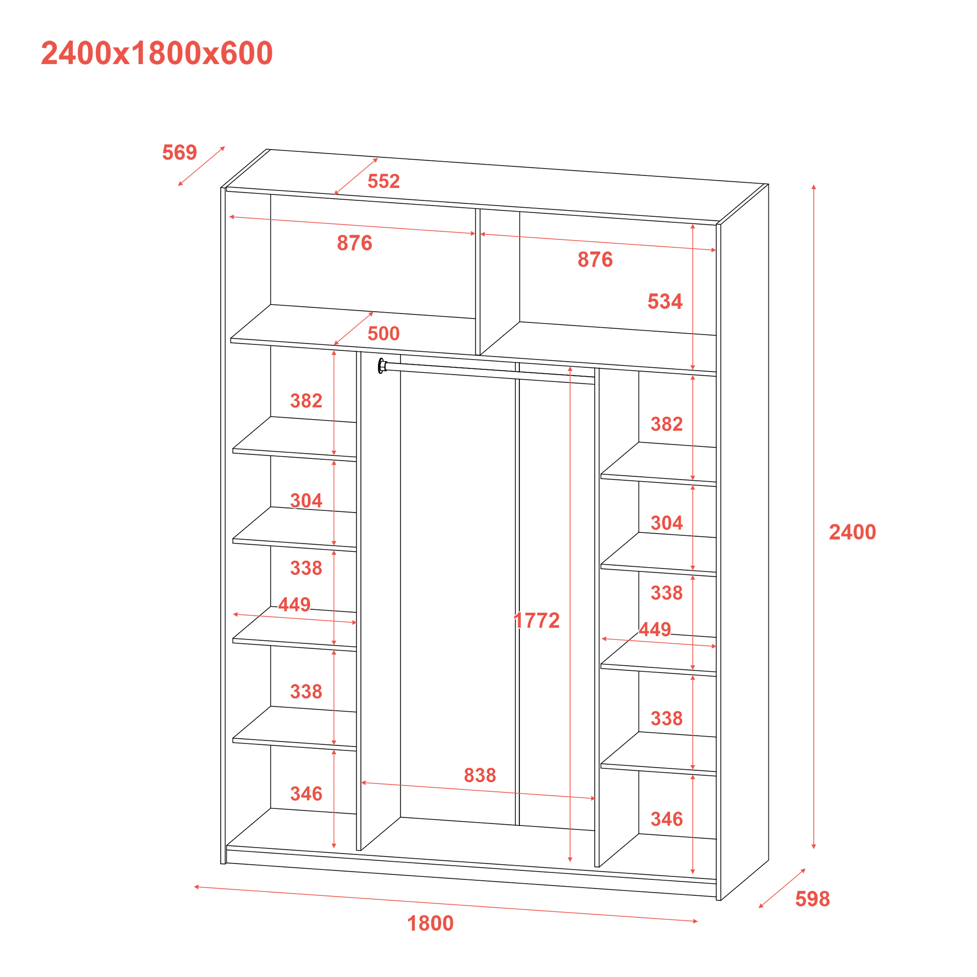 Фото Шафа купе Doros G-Caiser Графіт/Білий 2 ДСП / 3 частини 180х60х240  - SOFINO.UA