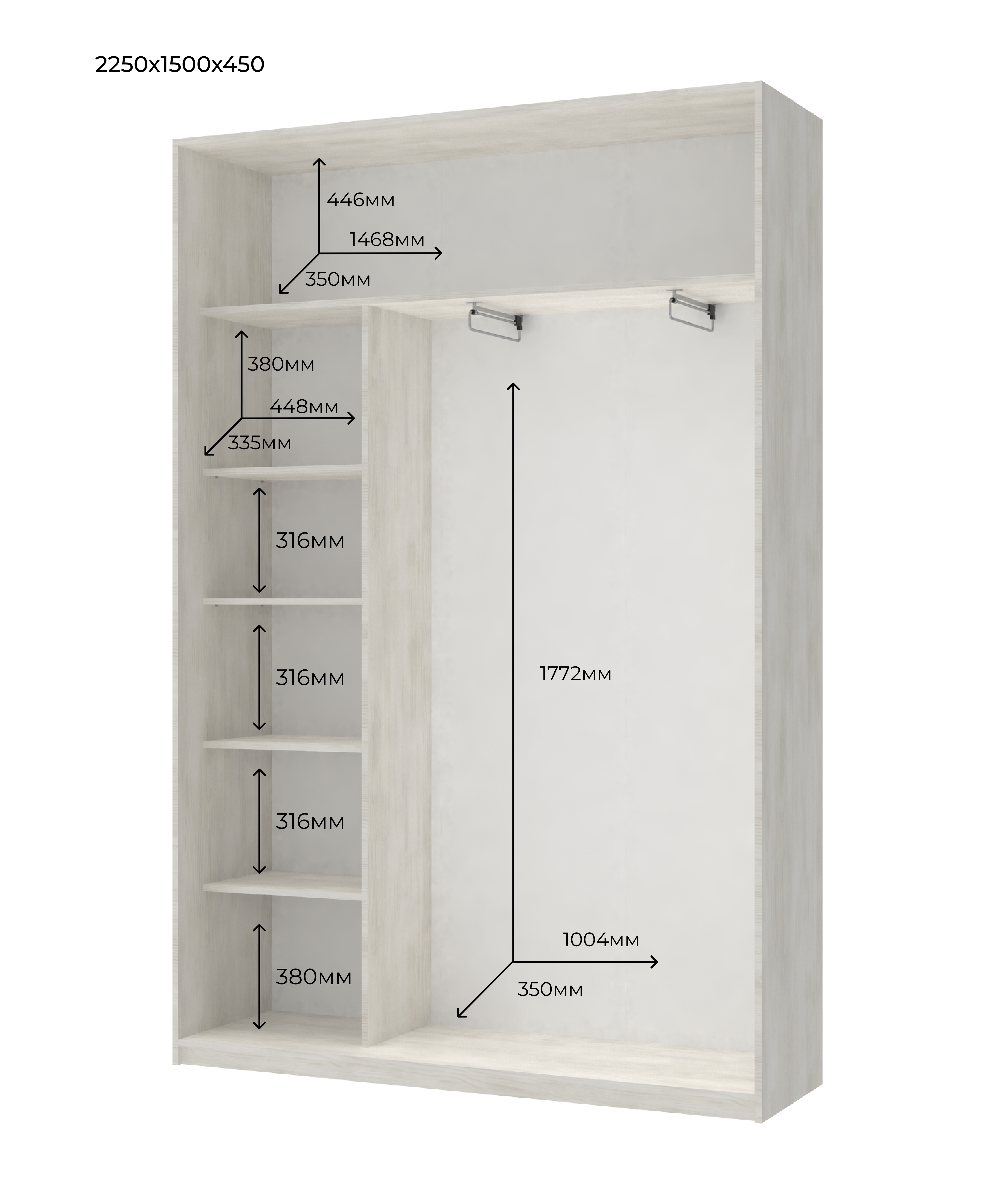 Шафа купе Doros Сіті Лайт Біле дерево 2 Дзеркала 150х45х225