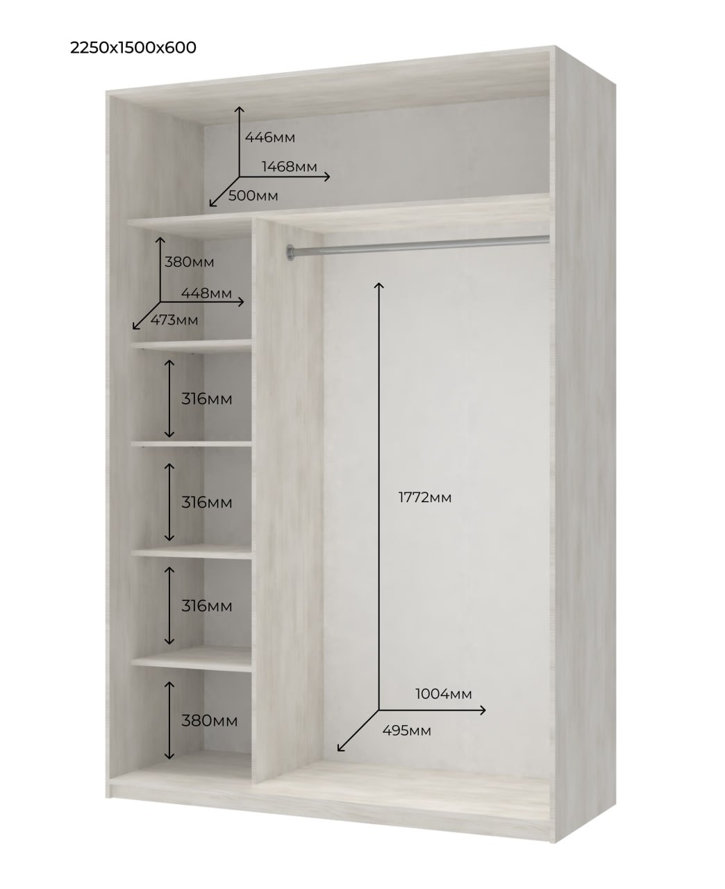Фото Шафа купе Doros Сіті Лайт Біле дерево 2 Дзеркала 150х60х225  - SOFINO.UA