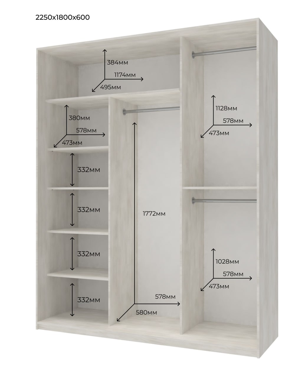 Фото Шафа купе Doros Сіті Лайт Біле дерево 3 ДСП 180х60х225  - SOFINO.UA