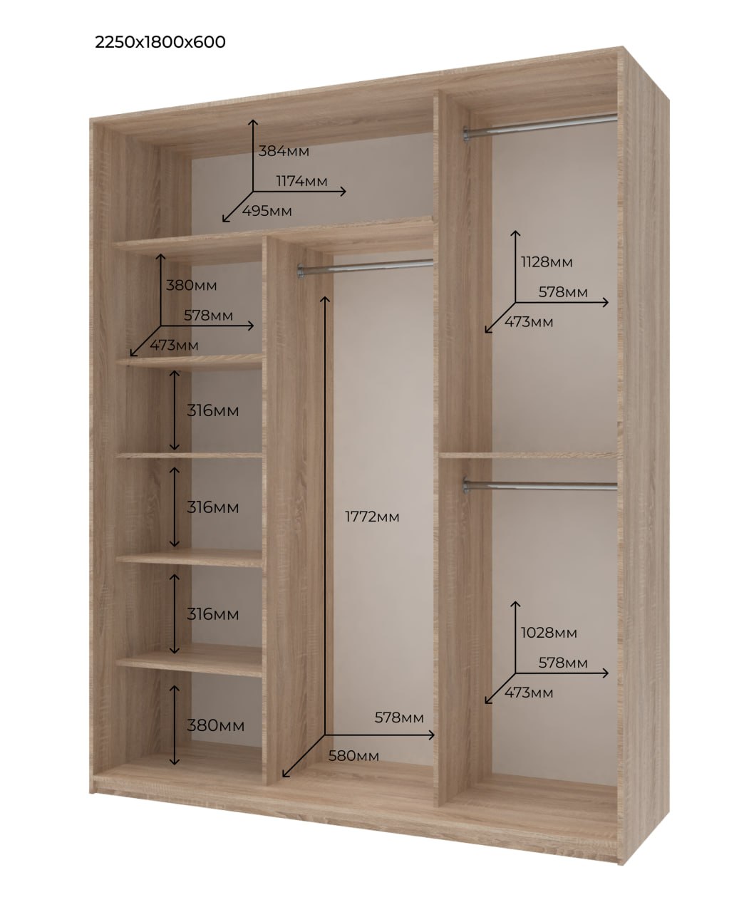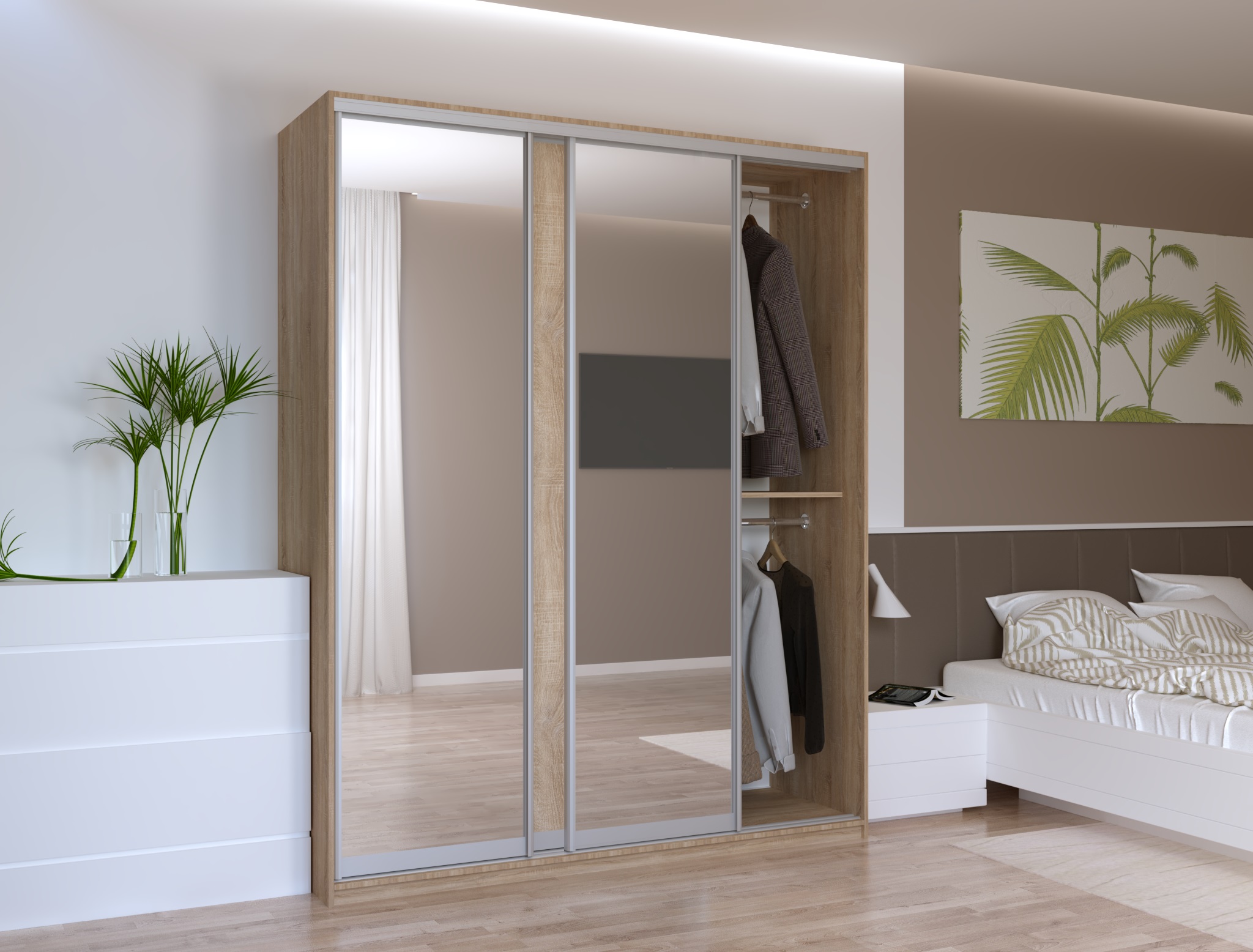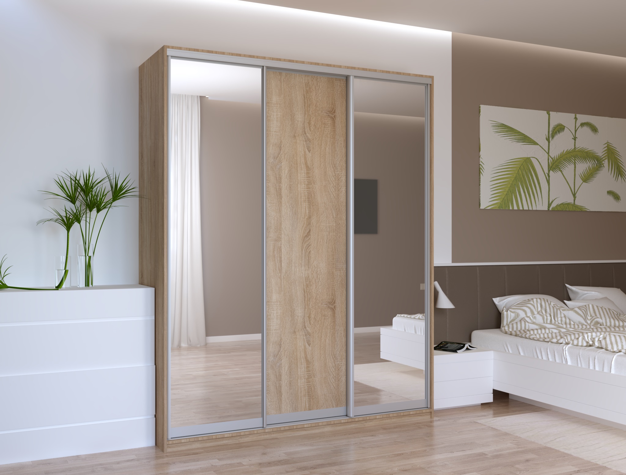 Фото Шафа купе Doros Сіті Лайт Дуб Cонома 1 ДСП / 2 Дзеркала 180х60х225 - SOFINO.UA