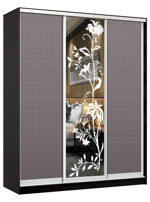 Шафа купе Стандарт AL | 3 двері | Ротанг + Художнє матування + Ротанг | 210x45,4x241 (ШxГxВ)