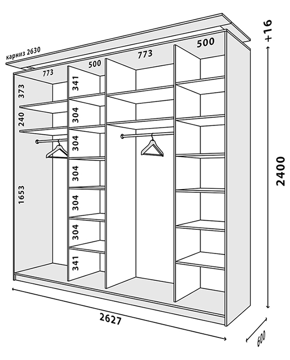 Фото Шафа купе чотиридверна Стандарт AL з фасадами ДСП/Сат.v1 • 263x60x240 см - SOFINO.UA