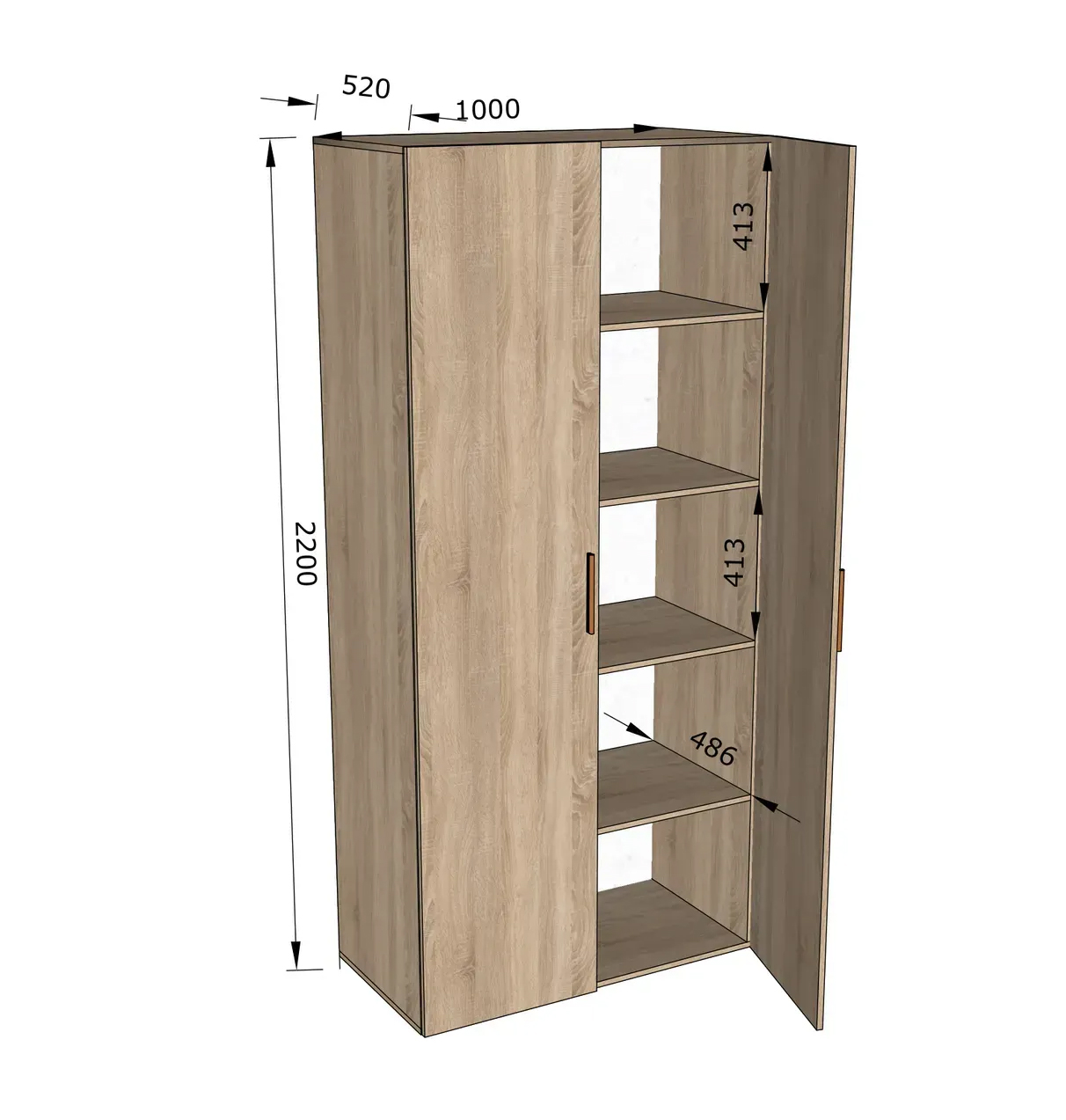 Шафа з полицями Moreli SТ0010 100x219x52 Бетон / Білий