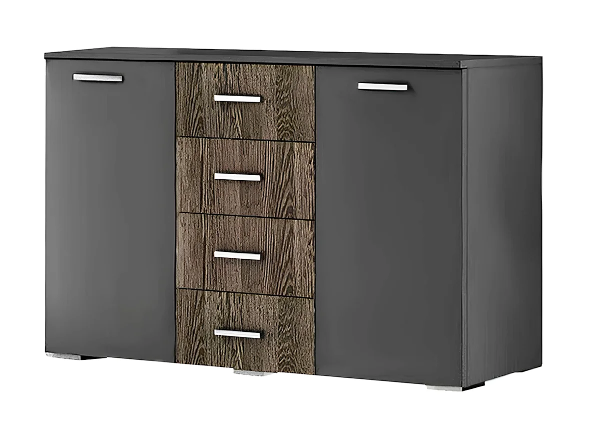 Фото Великий комод на 4 шухляди і 2 тумби Світ Меблів Лілея Нова ДСП у кольорі Дуб гранж та Антрацит (ширина 133,4 см, глибина 40,4 см, висота 81,1 см) - SOFINO.UA