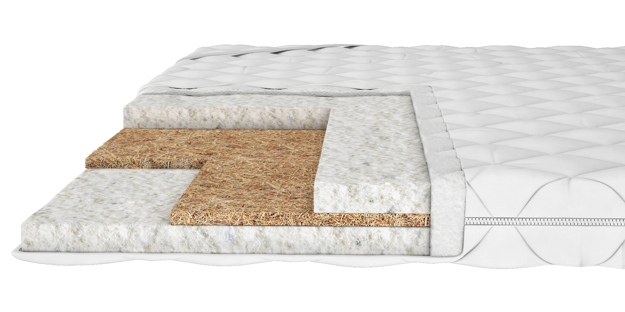 - Латексована кокосова койра: Натуральний, гіпоалергенний матеріал рослинного походження. Володіє міцністю, повітропроникністю, ортопедичними властивостями та жорсткістю завдяки латексному просоченню.