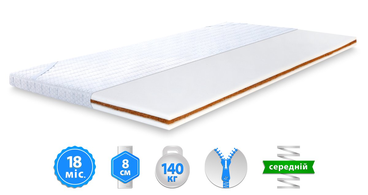 • кокосове полотно - це натуральний матеріал із спресованих волокон кокосового горіха, просочених латексом. Використовується для додання матрацу жорсткості.