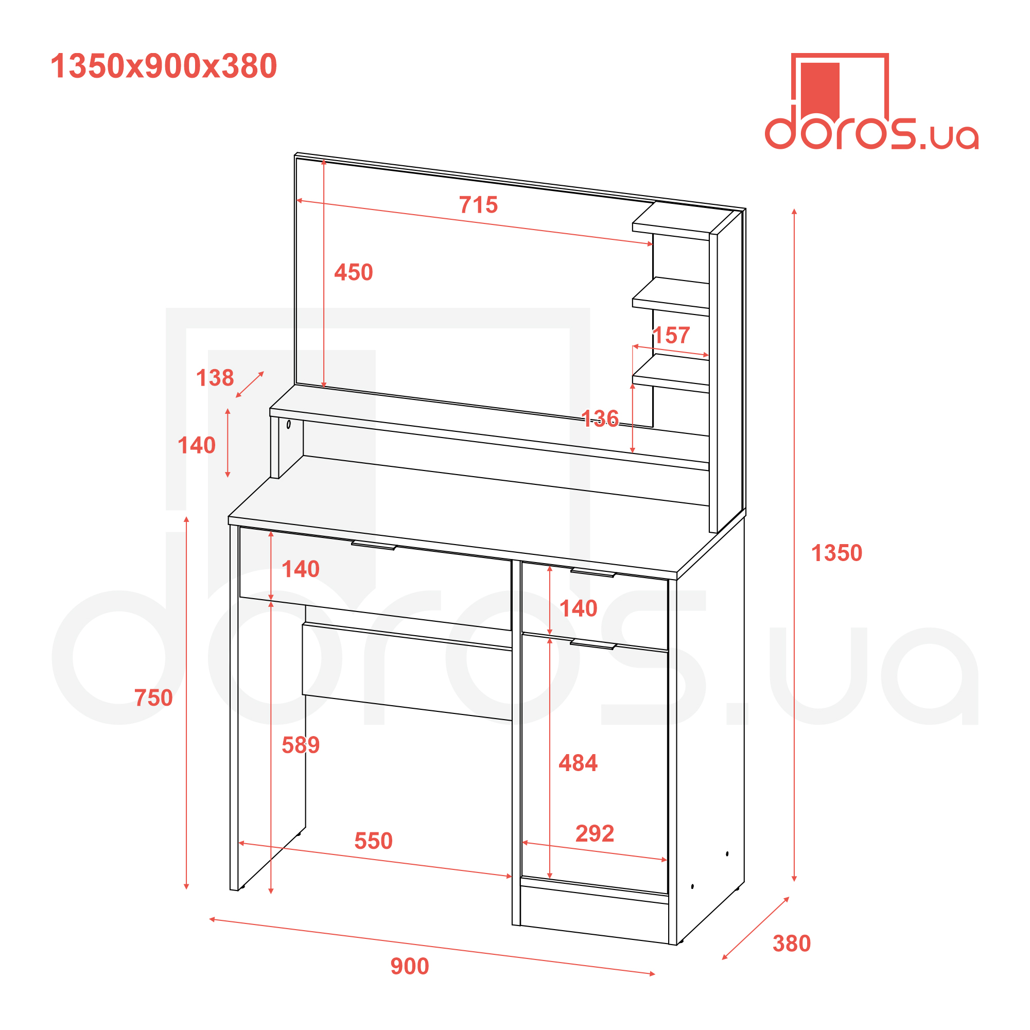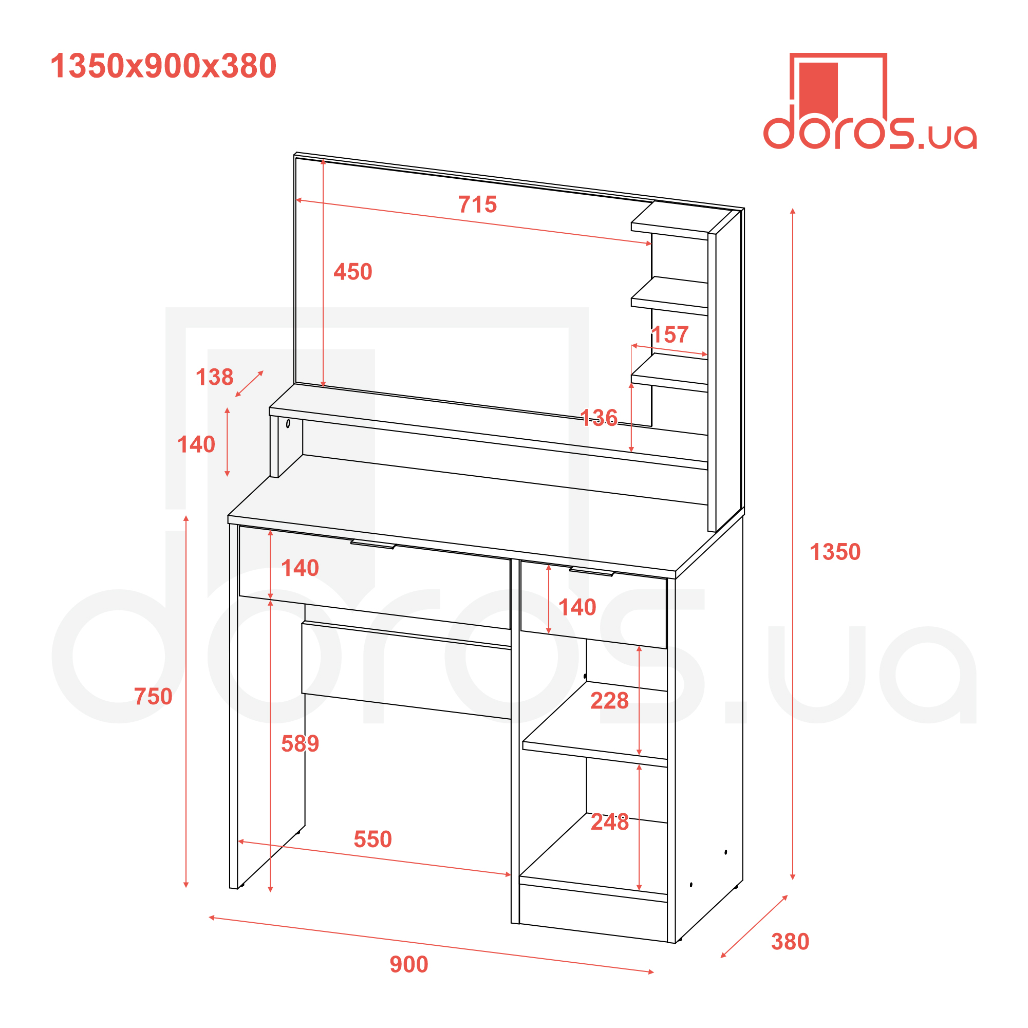 Туалетний столик Doros Естель Білий ДСП 90х38х135 (41516035)