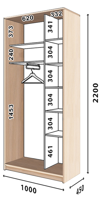 Шафа купе Стандарт AL | 2 двері | ДСП + ДСП | 100x45,4x221 (ШxГxВ)