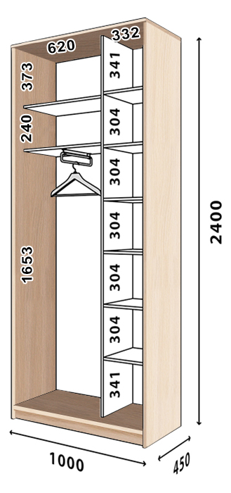 Шафа купе Стандарт AL | 2 двері | ДСП + ДСП | 100x45,4x241 (ШxГxВ)