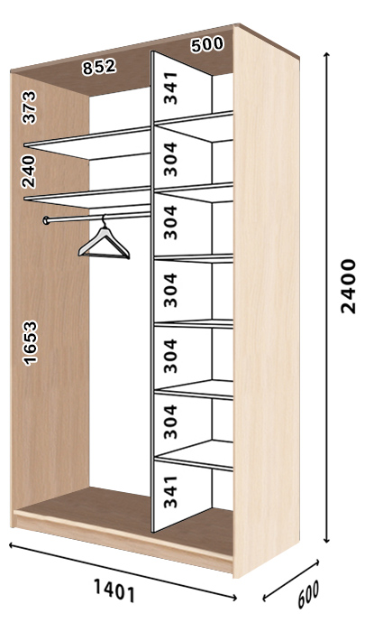 Шафа купе Стандарт AL | 2 двері | ДСП + ДСП | 140x60,4x241 (ШxГxВ)