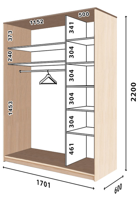 Фото Шафа купе Стандарт AL | 2 двері | ДСП + Дзеркало | 170x60,4x221 (ШxГxВ) - SOFINO.UA