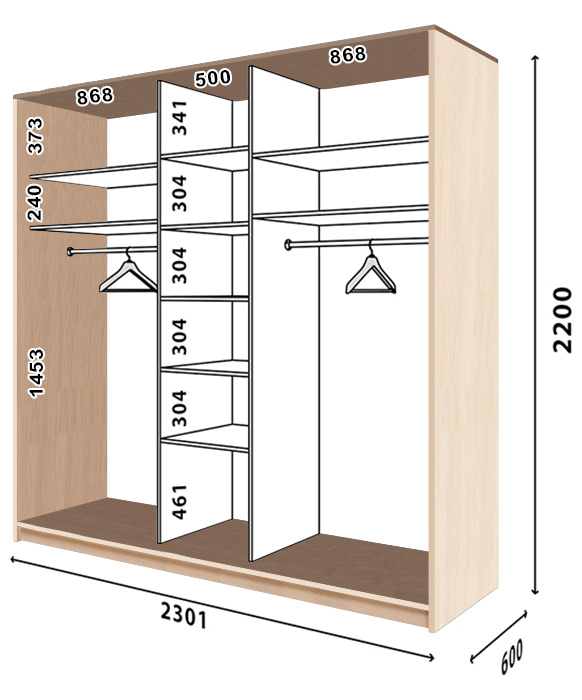 Шафа купе Стандарт AL | 3 двері | ДСП + Ротанг + ДСП | 230x60,4x221 (ШxГxВ)