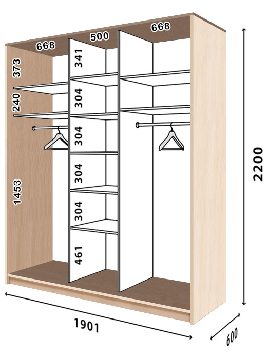 Шафа купе Стандарт AL | 3 двері | ДСП/сат.v1 + ДСП + ДСП/сат.v1 | 190x60,4x221 (ШxГxВ)